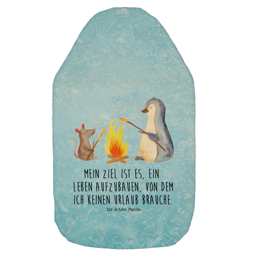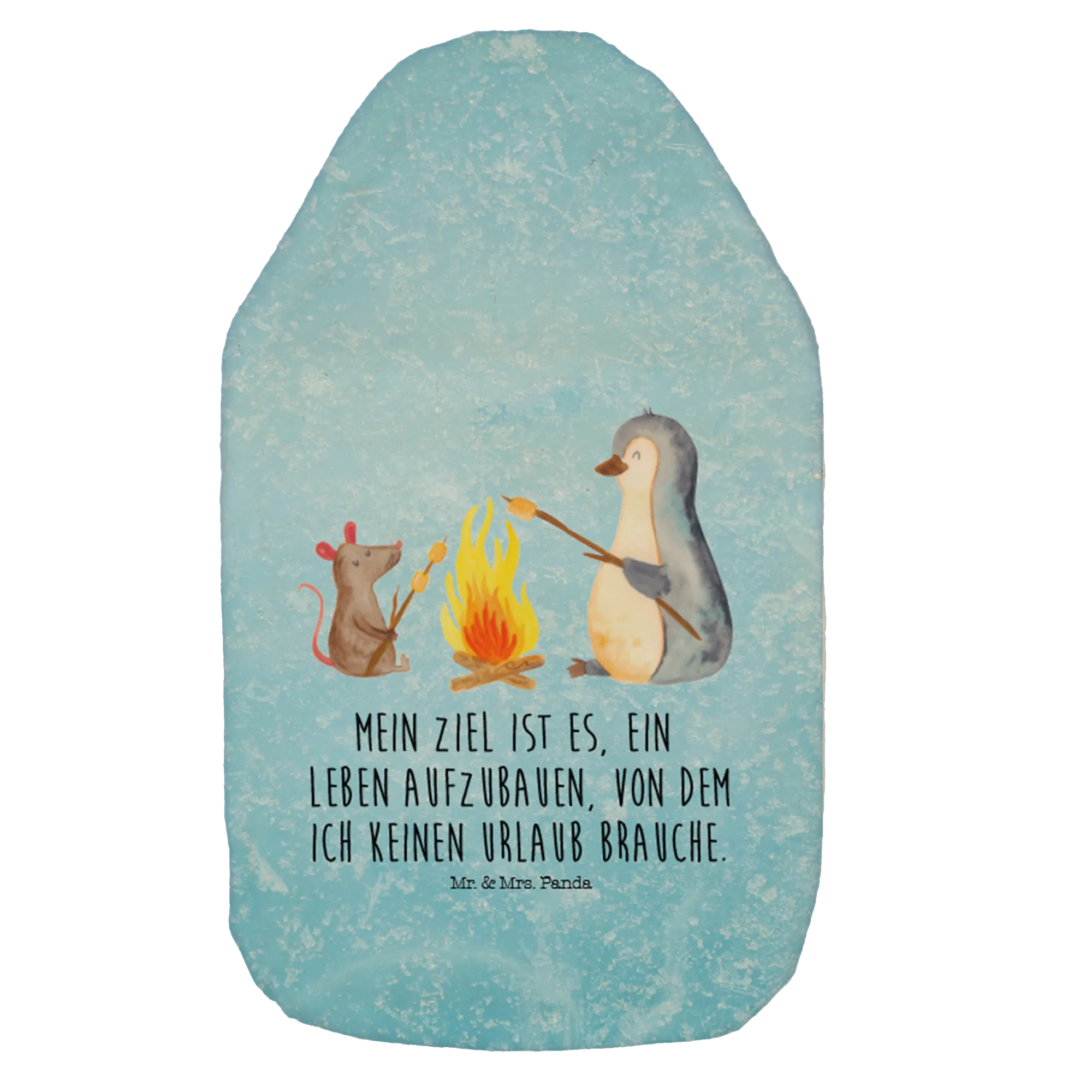 Wärmflasche Pinguin Lagerfeuer - mit Spruch - Eisblau