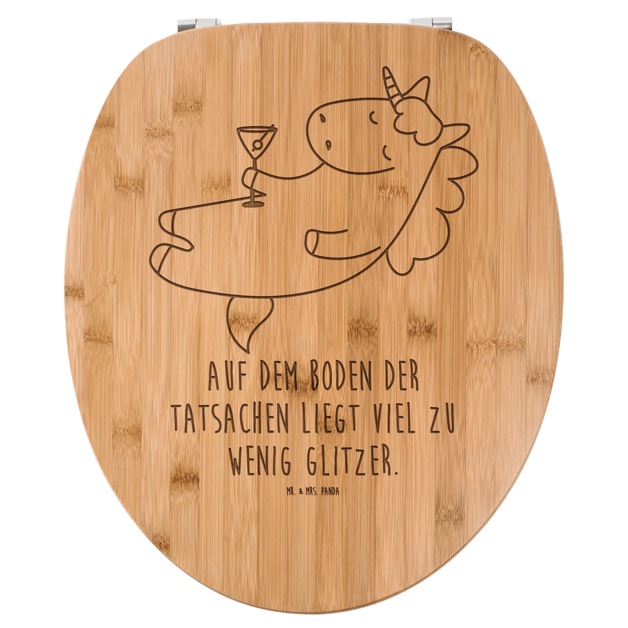 Der WC Sitz Einhorn Cocktail von Mr. & Mrs. Panda ist der perfekte Begleiter für alle Einhorn-Liebhaber und sorgt für magische Momente im Badezimmer. Mit seinem fröhlichen und bunten Design bringt dieser Toilettensitz eine Portion Lebensfreude in jeden Raum. Das süße Einhorn, das ein entspanntes Cocktailglas in der Hand hält, erinnert uns daran, dass wir uns die Freude am Leben auch beim alltäglichsten Moment nicht nehmen lassen sollten. Ob für deine beste Freundin, die leidenschaftlich gerne Feiern und Cocktail-Partys veranstaltet, oder als besonderes Geschenk zum Geburtstag – mit diesem Klobrille zauberst du jedem ein Lächeln ins Gesicht. Der Slogan "Auf dem Boden der Tatsachen liegt viel zu wenig Glitzer" unterstreicht den fröhlichen Charakter des Produktes und zaubert garantiert jedem ein Schmunzeln ins Gesicht.
