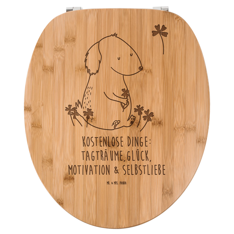 Dieser wunderschöne und praktische WC Sitz von Mr. & Mrs. Panda bringt Freude in dein Badezimmer. Er ist mit niedlichen Sprüchen und Motiven bedruckt, die deinem Klo eine ganz besondere Note verleihen. Der Toilettensitz hat die Maße von 430 mm x 370 mm x 50 mm und ist in zwei attraktiven Materialien erhältlich: braunes Bambus Holz oder weißes MDF Holz. Ganz egal, für welches Design du dich entscheidest, dieser Sitz bietet hohen Komfort und selbst bei kühlen Temperaturen bleibt die Sitzfläche angenehm warm. Dank des lang anhaltenden UV Drucks und des versiegelten Holzes ist der Sitz langlebig und pflegeleicht. Die Universalscharniere sorgen dafür, dass der Deckel auf jedes Euro-WC-Becken passt. Befestigungsmaterial ist im Lieferumfang enthalten und die Montage ist kinderleicht. Nach der Verwendung kannst du den Sitz einfach mit einem feuchten Tuch und handelsüblicher Seife abwischen. Verleihe deinem Badezimmer mit diesem einzigartigen WC Sitz von Mr. & Mrs. Panda einen Hauch von Lebensfreude!