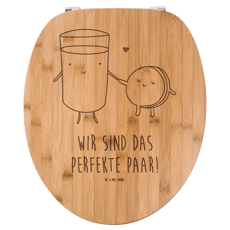 Mr. & Mrs. Panda WC Sitz „Milch & Keks“ – Ein liebevoll gestalteter Toilettensitz aus der Small World Kollektion, der deinem Badezimmer sofort Charme verleiht. Das Motiv zeigt ein Glas Milch und einen Keks, die Händchen halten, begleitet vom fröhlichen Spruch „Wir sind das perfekte Paar!“. Ein echtes Highlight für Paare, Familien und alle, die gern mit kleinen, dekorativen Details Lebensfreude ins Bad bringen.