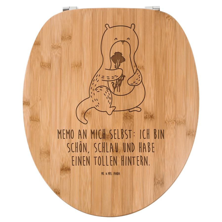 Der Mr. & Mrs. Panda WC Sitz ist nicht nur funktional, sondern auch dekorativ! Mit seinen liebevollen Motiven und Sprüchen ist dieser Toilettensitz ein echter Hingucker in jedem Badezimmer. Die Abmessungen von 430 mm x 370 mm x 50 mm machen ihn passend für die meisten WC-Becken. Geschaffen aus hochwertigem Bambus Holz in braun oder aus weißem MDF, bietet er dir einen hohen Sitzkomfort, auch wenn es kühl ist. Dank des wasserfesten UV-Drucks bleibt das Design lange erhalten. Zudem kannst du ihn dank der einfachen Montage und dem enthaltenen Befestigungsmaterial schnell anbringen. Dein Bad wird mit diesem kreativen WC-Deckel lebendiger und einladender! Ob zur eigenen Nutzung oder als Geschenk, dieser Klo-Sitz ist ein ideales Wohnaccessoire.