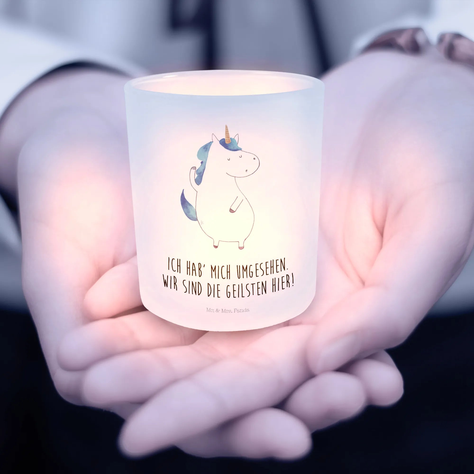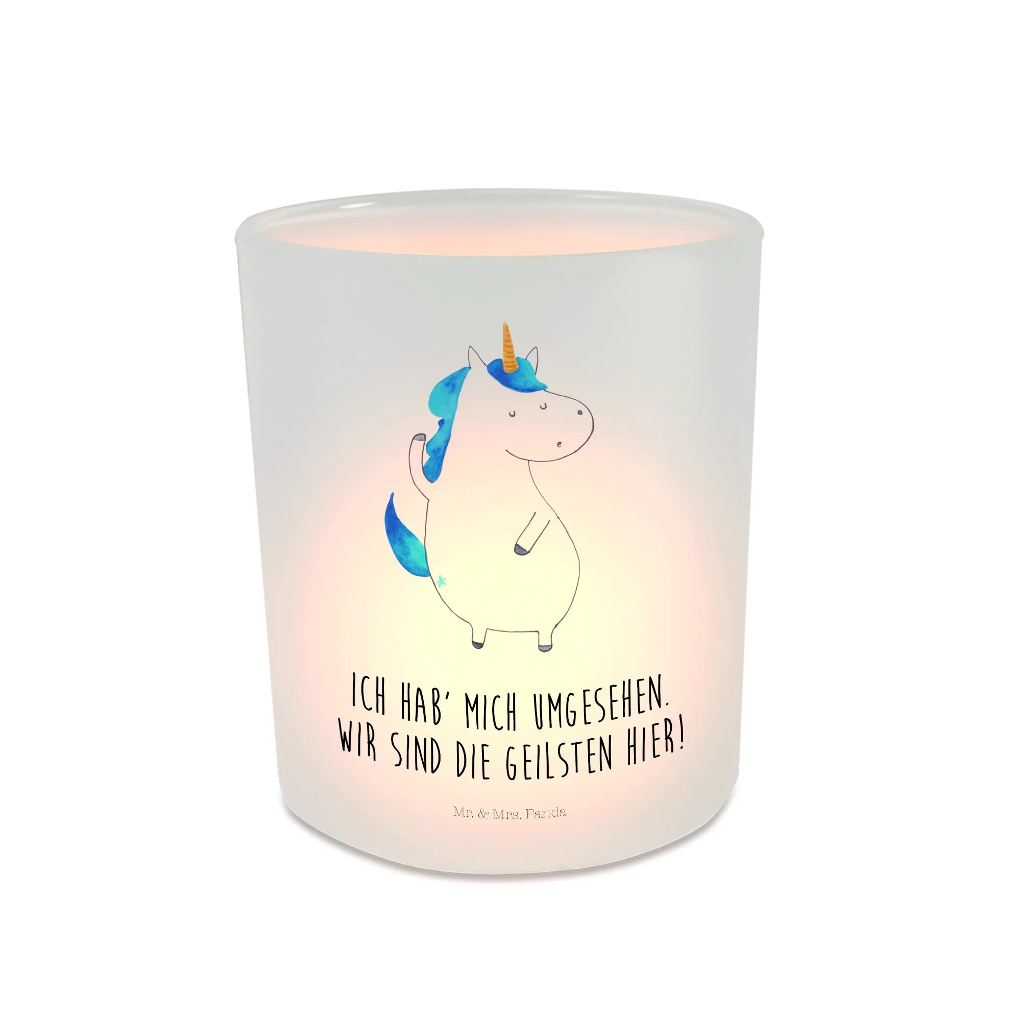 Das einzigartige Windlicht mit dem wunderschönen Einhorn-Motiv von Mr. & Mrs. Panda ist das perfekte Geschenk für all die, die Einhörner lieben. 🌈 Handgezeichnet und mit dem witzigen Spruch 'Ich hab' mich umgesehen. Wir sind die Geilsten hier!' versehen, ist dieses Teelichtglas nicht nur ein schöner Deko-Artikel, sondern auch ein Zeichen der Verbundenheit mit deinen Liebsten.