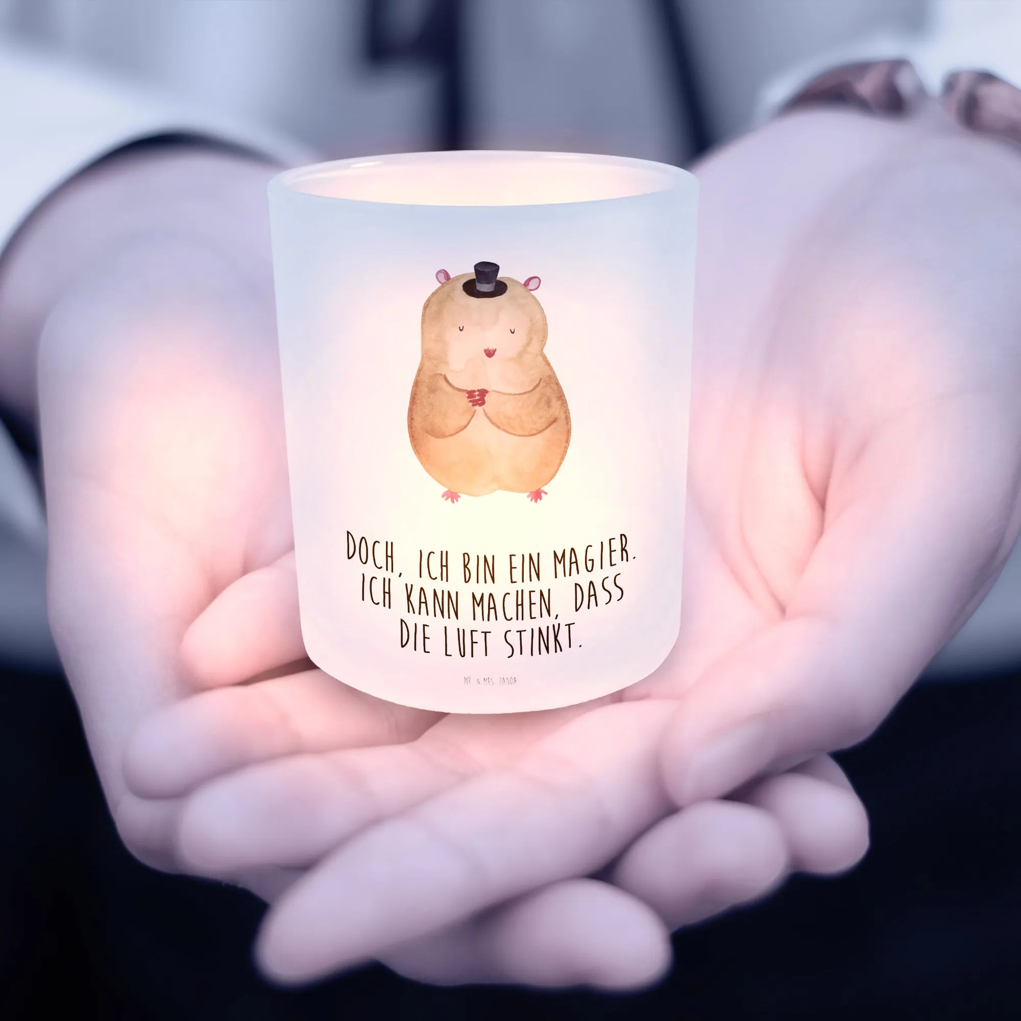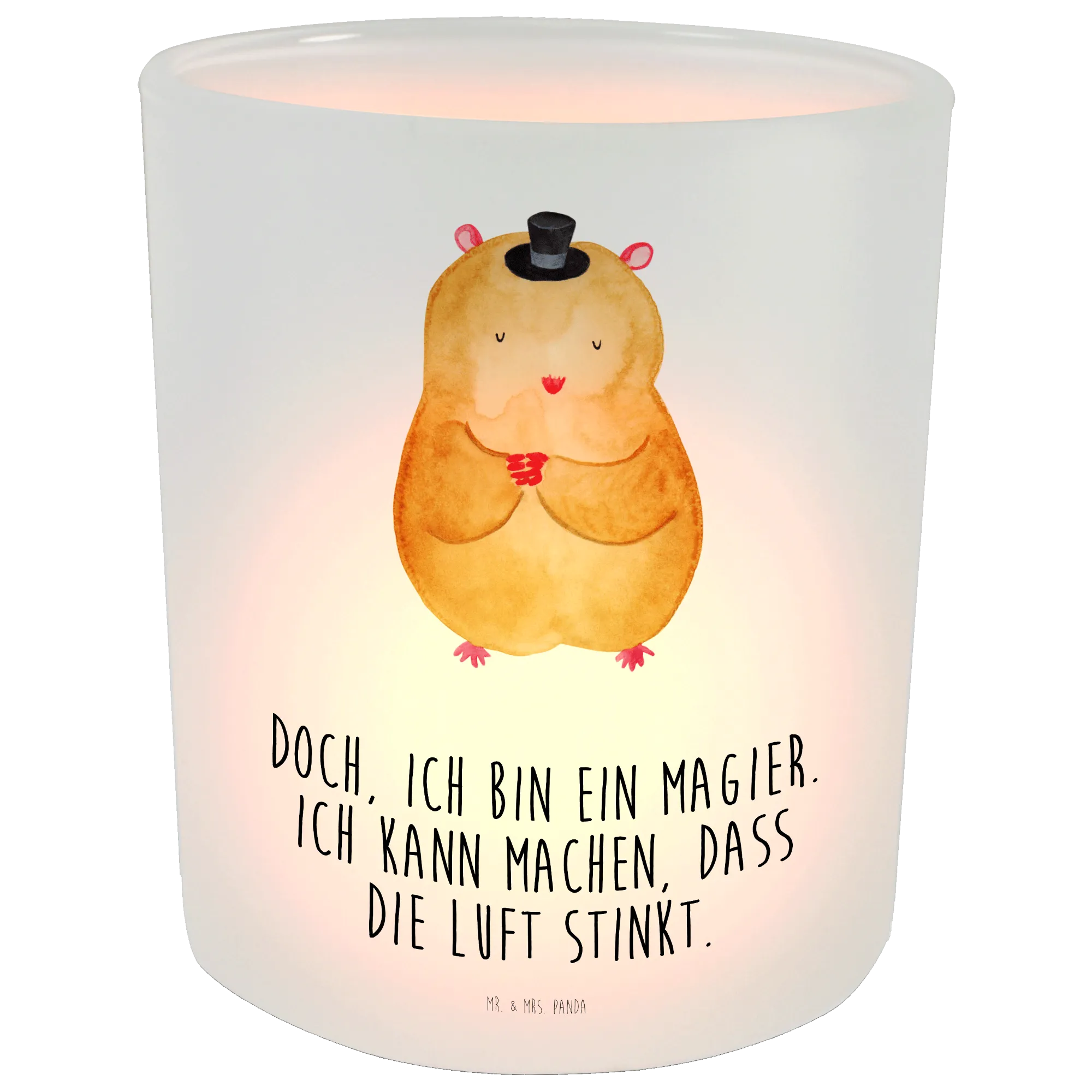 Windlicht Hamster Hut - mit Spruch