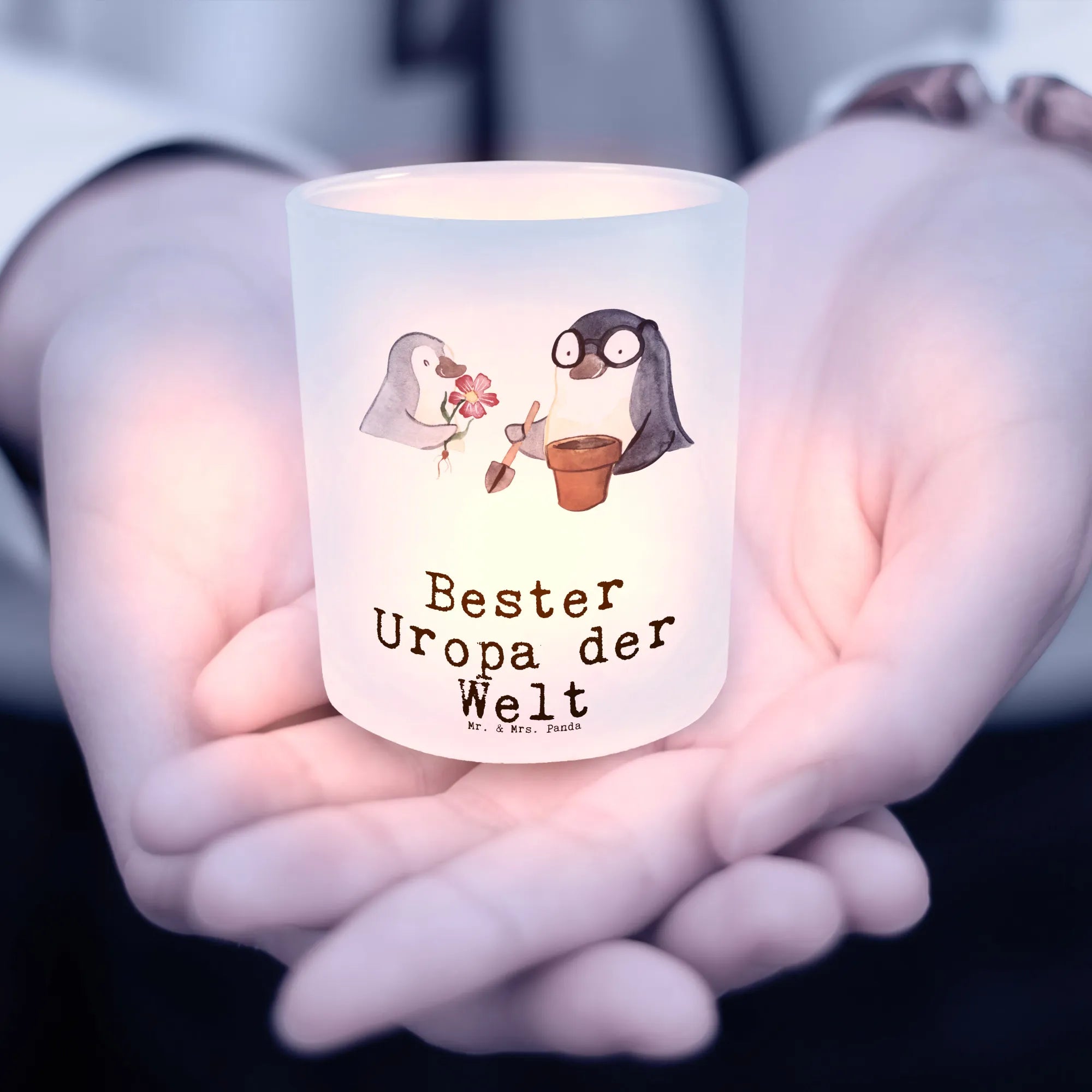 Ein wunderschönes, edles Windlicht von Mr. & Mrs. Panda, das dein Herz höher schlagen lässt! Dieses zauberhafte Windlicht mit dem liebevollen Motiv "Pinguin Bester Uropa der Welt" aus der Collection Beziehungen ist das perfekte Geschenk für alle, die ihren Uropa schätzen.