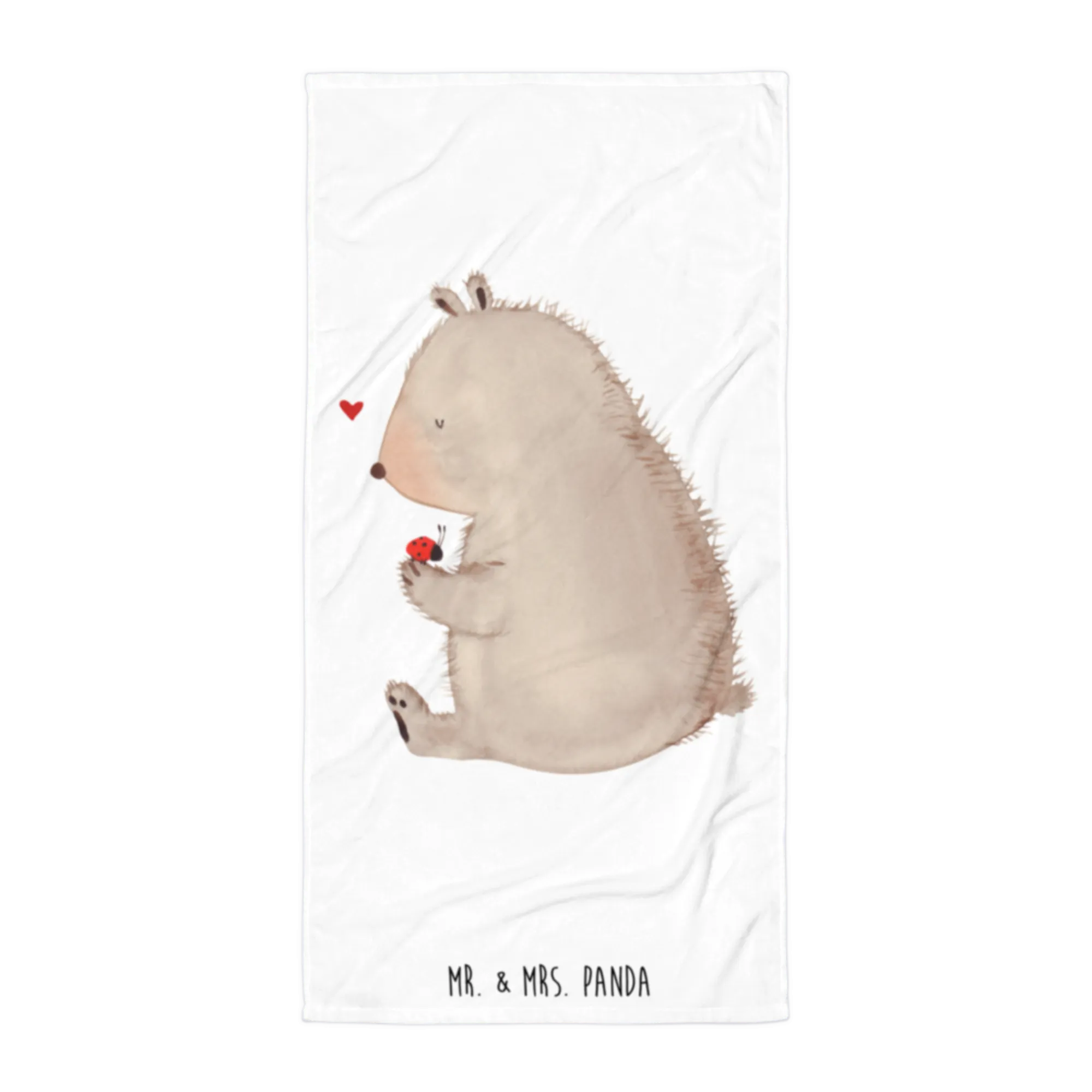 Das XL Badehandtuch mit dem süßen Motiv "Bär mit Marienkäfer" von Mr. & Mrs. Panda ist das perfekte Geschenk für all die, die das Leben in vollen Zügen genießen möchten. Mit seinem bunten und strahlenden Design bringt dieses Handtuch Freude und eine positive Stimmung in jeden Alltag.