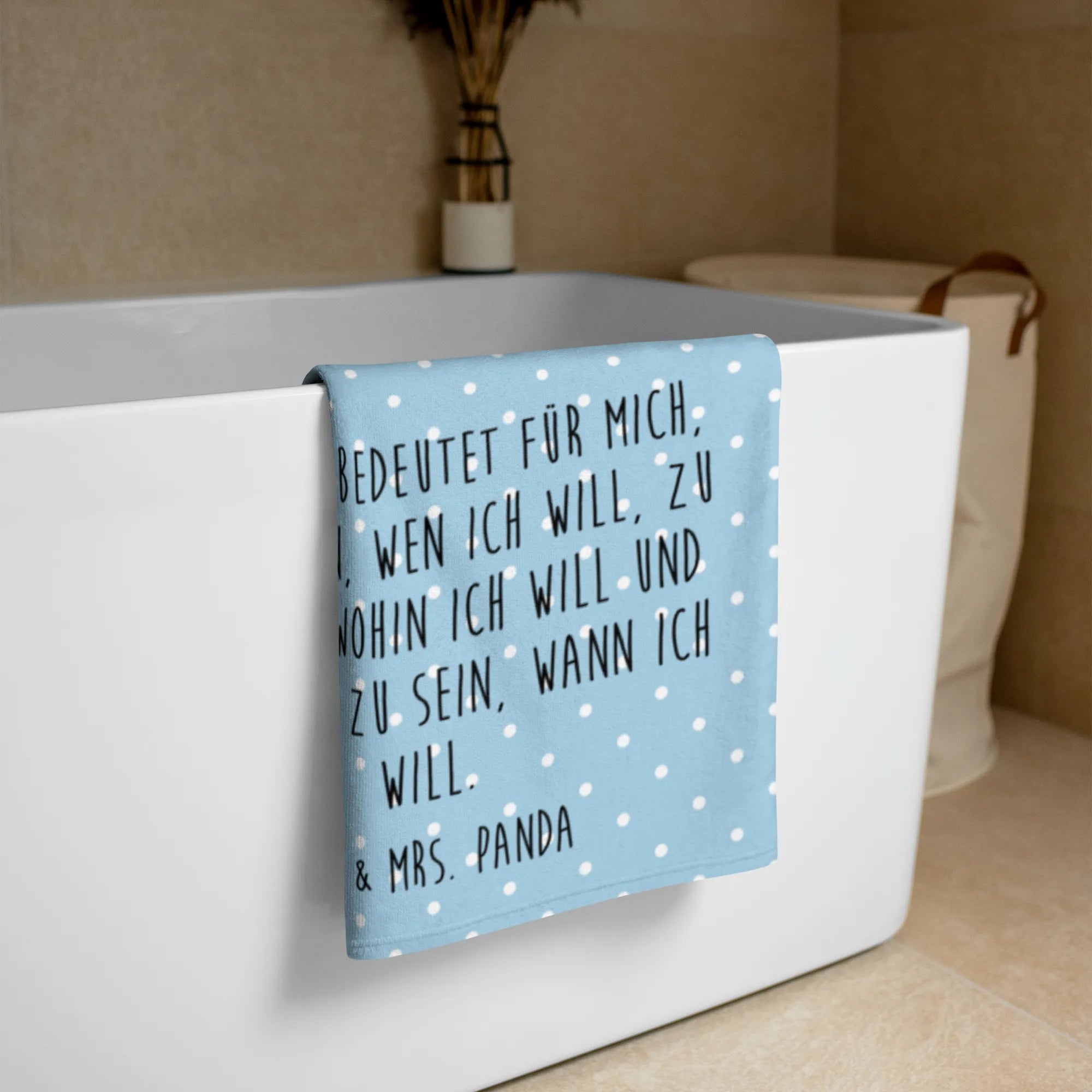 Verwöhne dich selbst oder jemanden, der dir am Herzen liegt, mit diesem tollen Produkt, das jeden Tag ein wenig schöner macht. Lass dich von dem niedlichen Motiv inspirieren und genieße deine Zeit in vollen Zügen. "Freiheit bedeutet für mich, zu lieben, wen ich will, zu reisen, wohin ich will und verrückt zu sein, wann ich will" - Dieser Slogan, obwohl nicht direkt auf dem Handtuch, spiegelt die Grundwerte wider, die hinter jedem Produkt von Mr. & Mrs. Panda stehen.