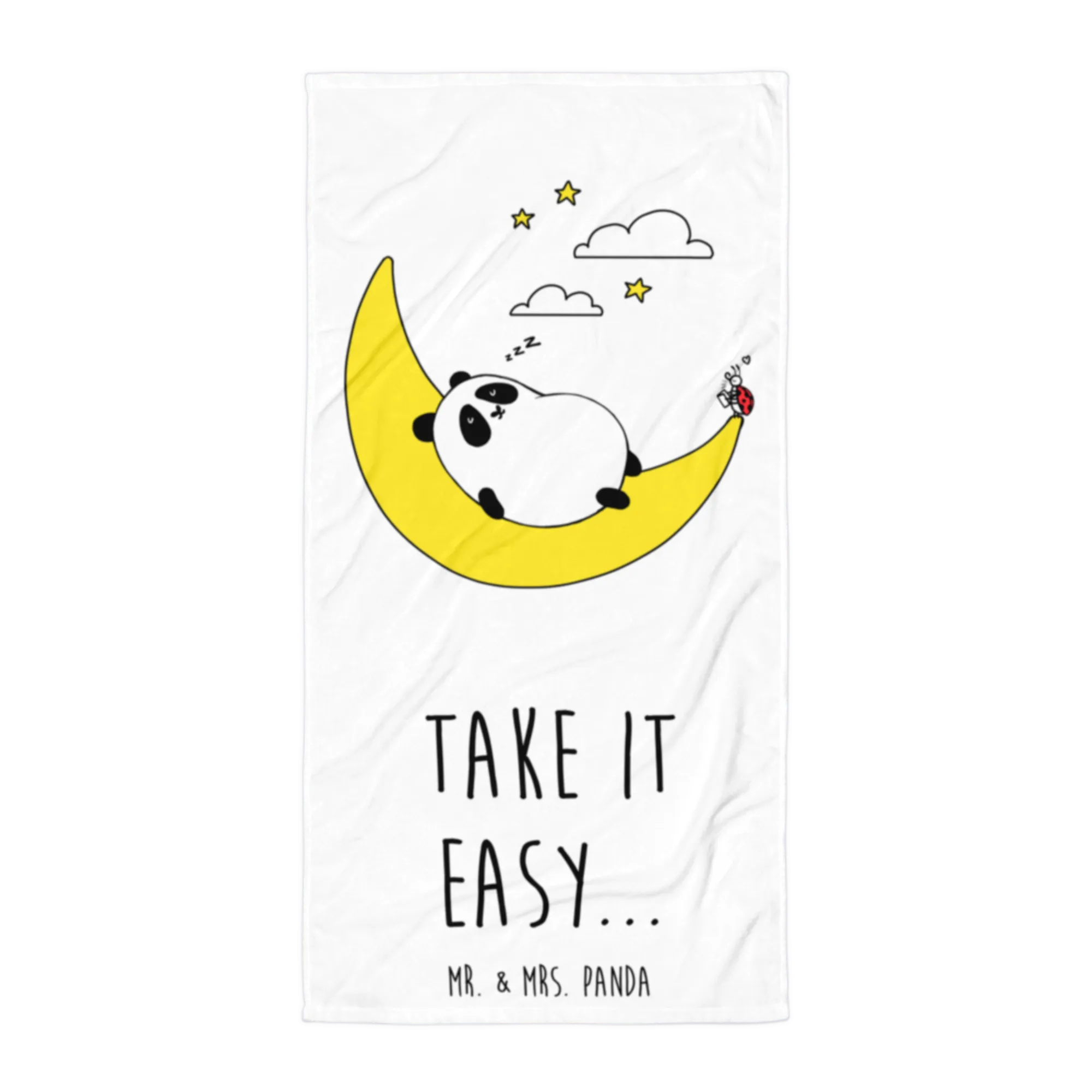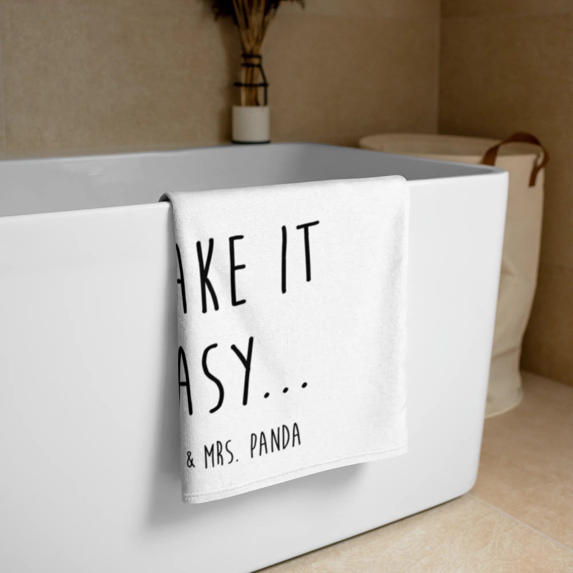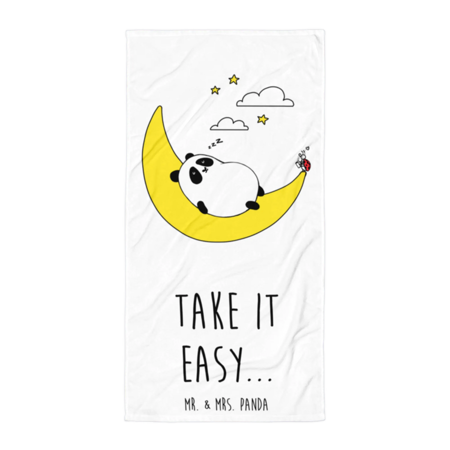 Das XL Badehandtuch "Easy & Peasy Take it Easy" von Mr. & Mrs. Panda ist nicht nur ein Handtuch, sondern ein kleines Stück Wohlfühl-Oase! Mit seinen großzügigen Maßen von 1520 mm x 760 mm hüllt es dich in eine kuschelige Umarmung aus 50% Baumwolle und 50% Polyester, perfekt für entspannte Momente nach einem Bad oder einem Tag am Strand.