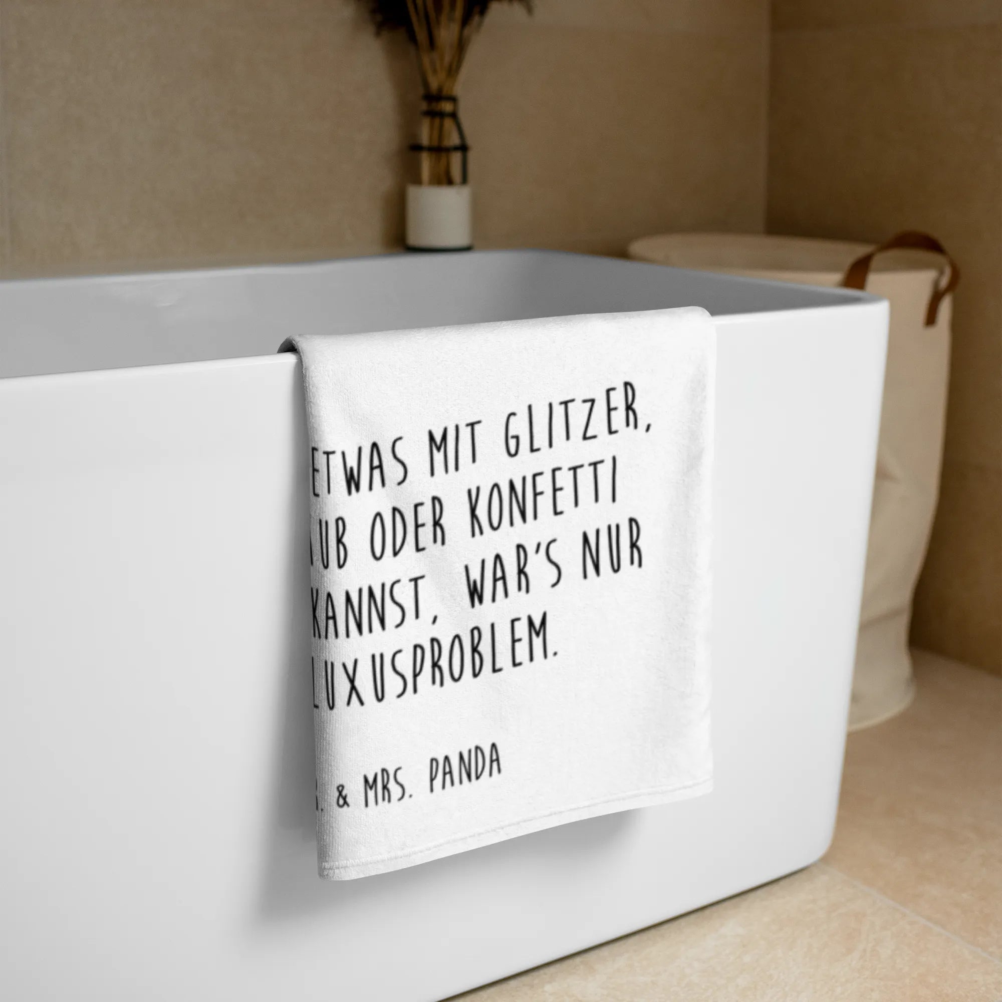 Wenn du also auf der Suche nach einem besonderen Geschenk bist, sei es für einen Geburtstag, als Aufmunterung bei Liebeskummer oder einfach als kleines Dankeschön für einen lieben Menschen, dann ist dieses Handtuch genau das Richtige! Der Spruch „Wenn du etwas mit Glitzer, Feenstaub oder Konfetti beheben kannst, war's nur ein Luxusproblem“ bringt die perfekte Leichtigkeit in jeden schwierigen Moment und zaubert ein Lächeln auf die Lippen.
