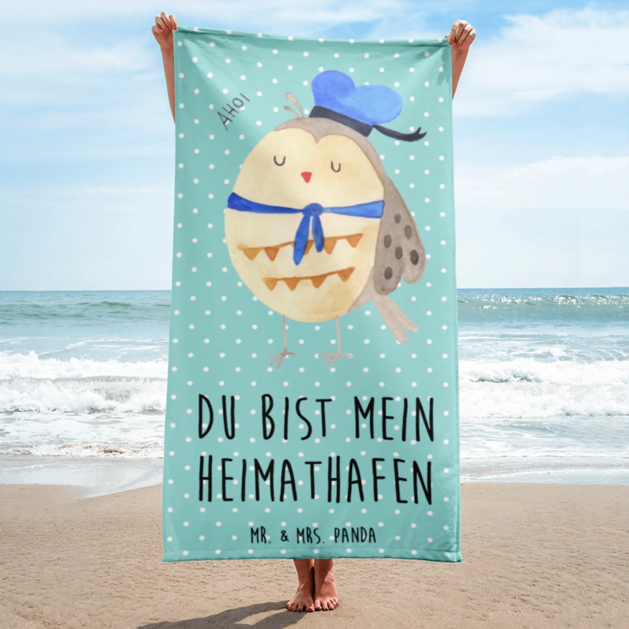Egal ob für den Strand, das Schwimmbad oder die Sauna - dieses Handtuch ist ein echtes Multitalent und ein absolutes Must-Have für Eulen-Fans! Das Handtuch ist nicht nur ein praktisches Accessoire, sondern auch ein perfektes Geschenk! Ob zum Hochzeitstag, zum Geburtstag oder einfach nur als liebevolle Überraschung für die Freundin – die Eule Matrosen sagt „Du bist mein Heimathafen“ und macht jede Geste zu etwas Besonderem.