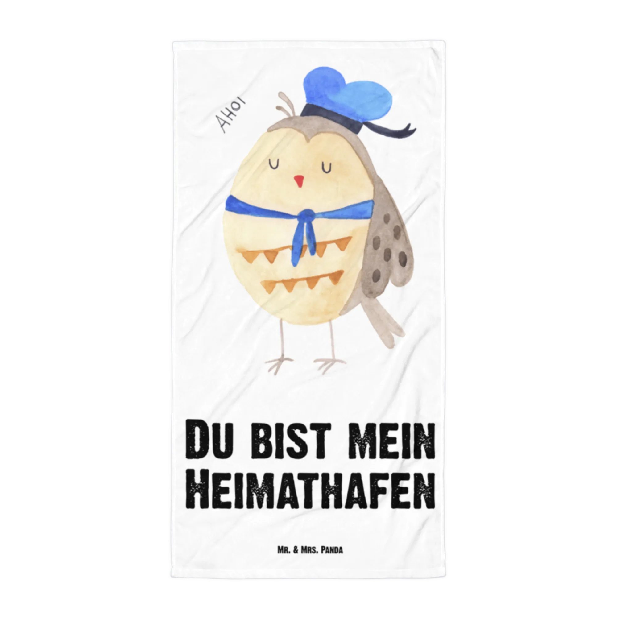 Das XL Badehandtuch Eule Matrosen von Mr. & Mrs. Panda ist das perfekte Geschenk für alle Eulenliebhaber und Matrosenfreunde! 🌊 Mit einer Größe von 1520 mm x 760 mm bietet es ausreichend Platz, um sich nach einem erfrischenden Bad oder einem entspannten Tag am Strand einzuhüllen. Die niedliche Eule im Matrosenoutfit zaubert jedem ein Lächeln ins Gesicht und der fröhliche Spruch 'Du bist mein Heimathafen' gibt dem Handtuch einen besonderen, liebevollen Touch.