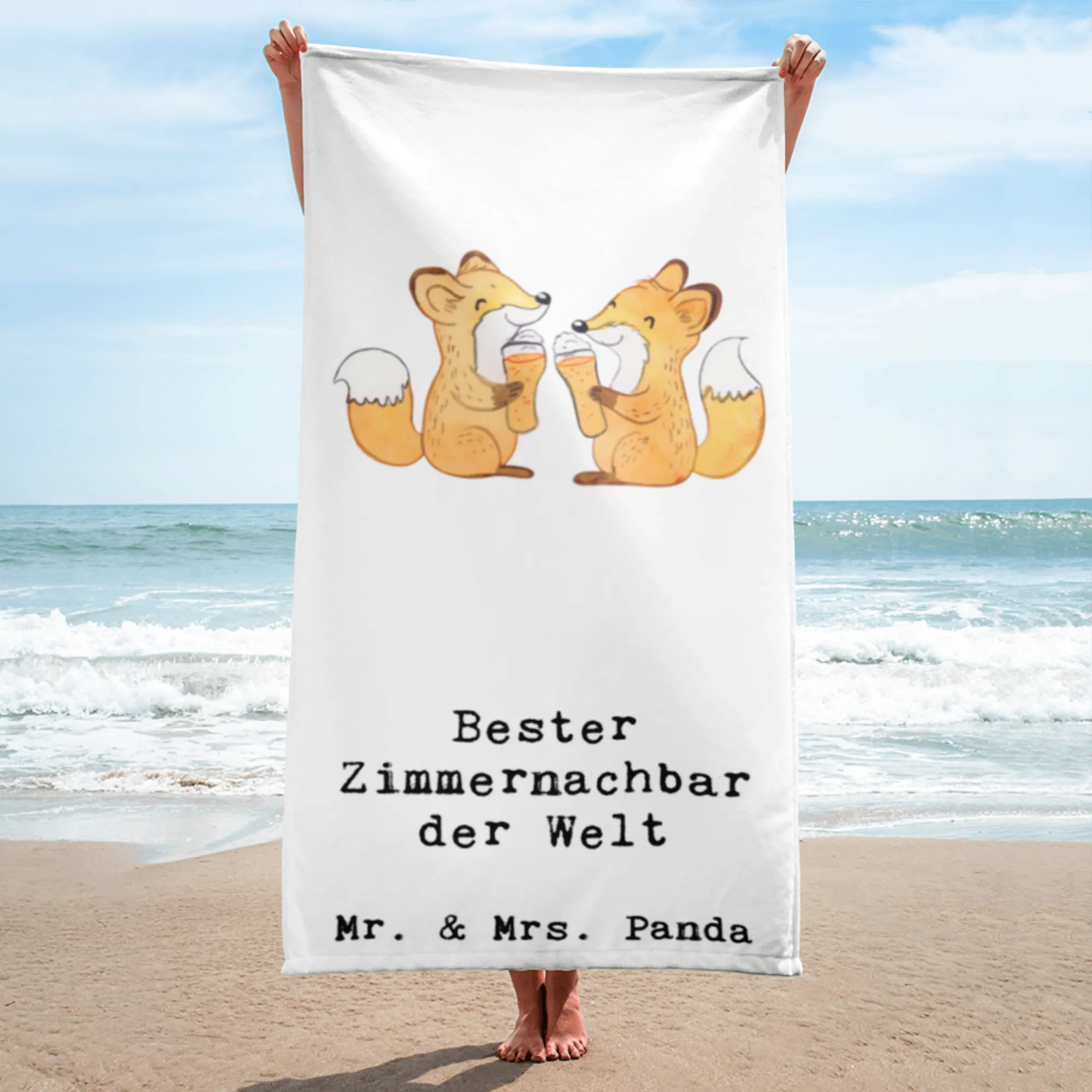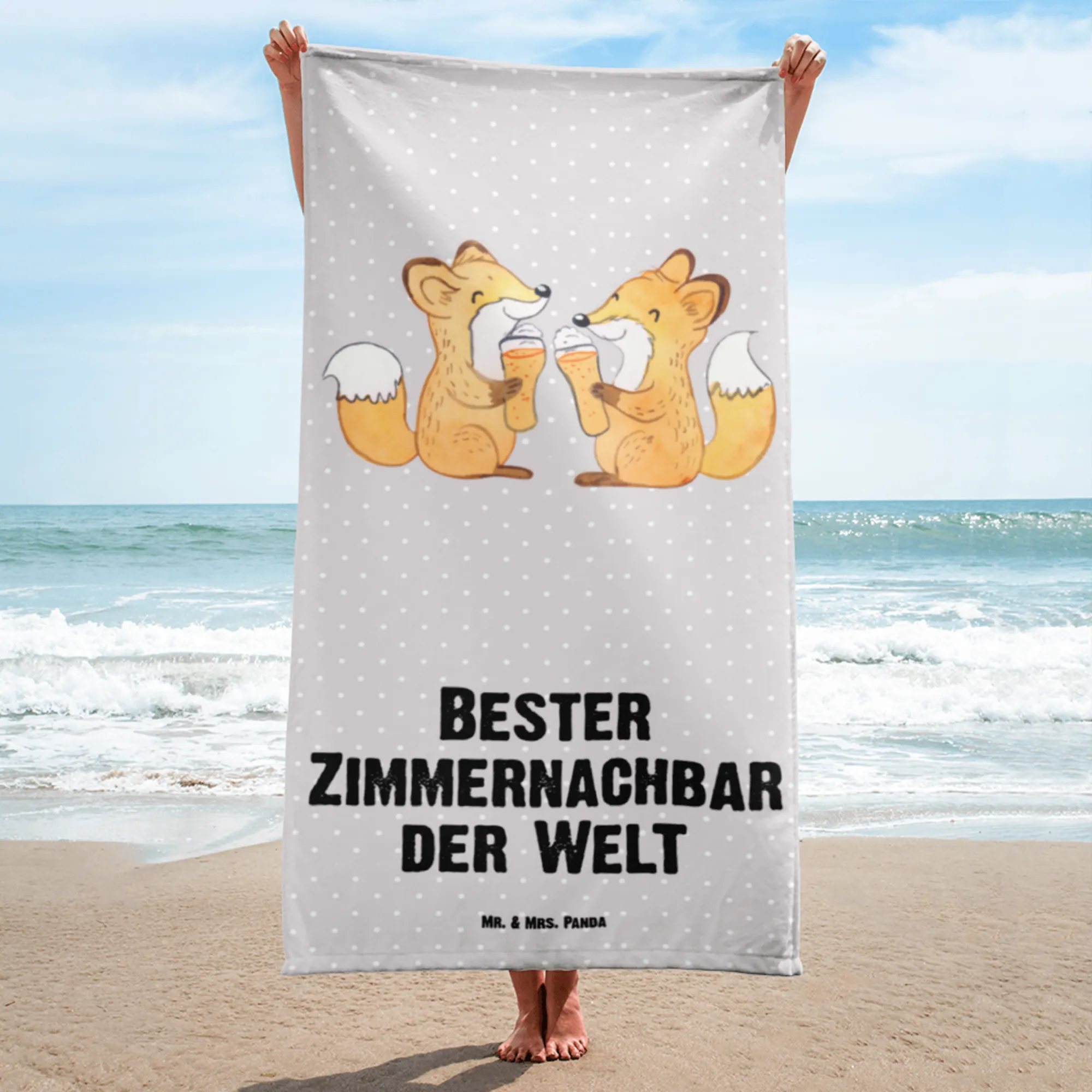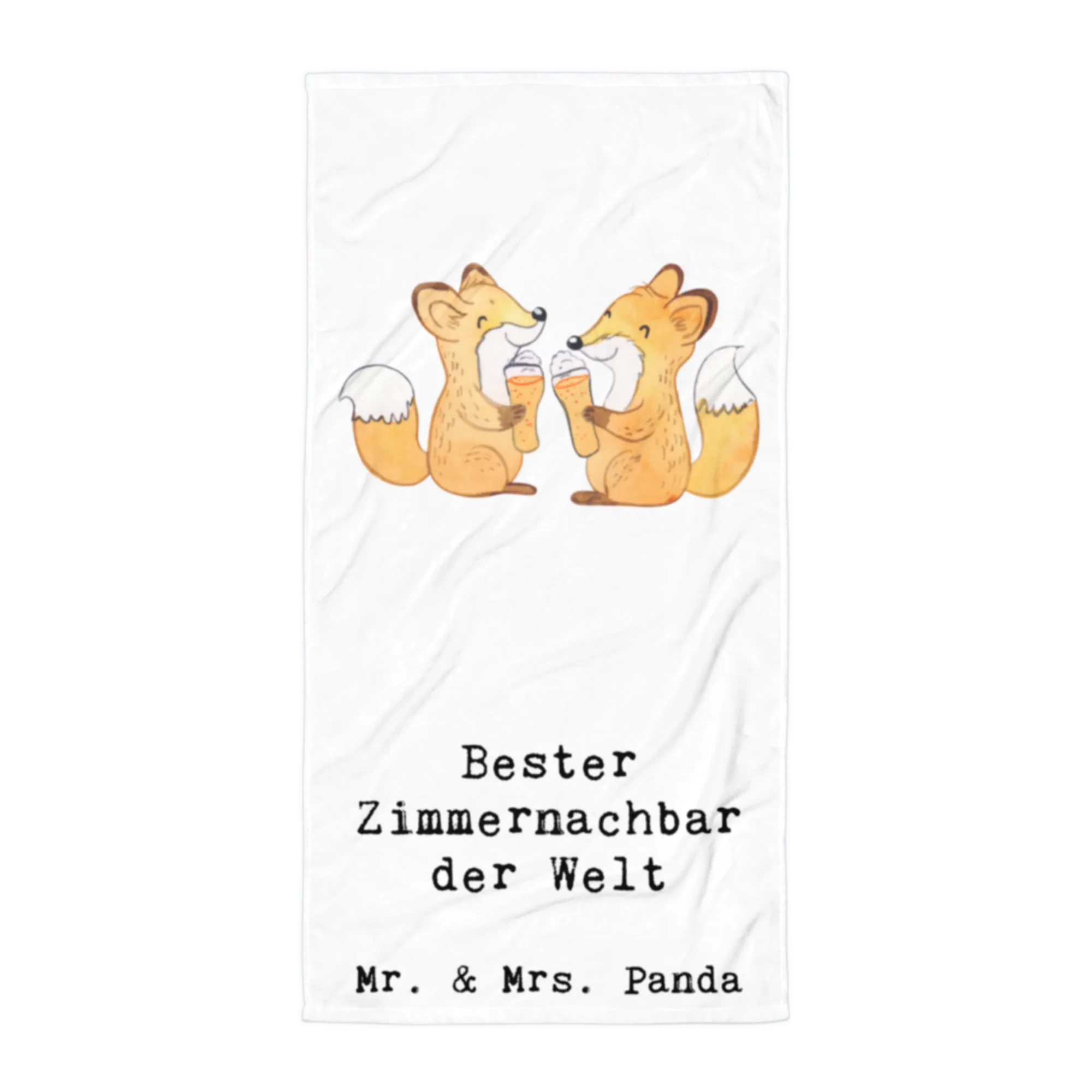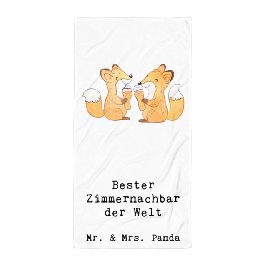 Das XL Badehandtuch mit dem süßen Motiv "Fuchs Bester Zimmernachbar der Welt" von Mr. & Mrs. Panda ist das perfekte Geschenk für all Deine Freunde und Nachbarn, die ein wenig Freude in ihrem Alltag benötigen.