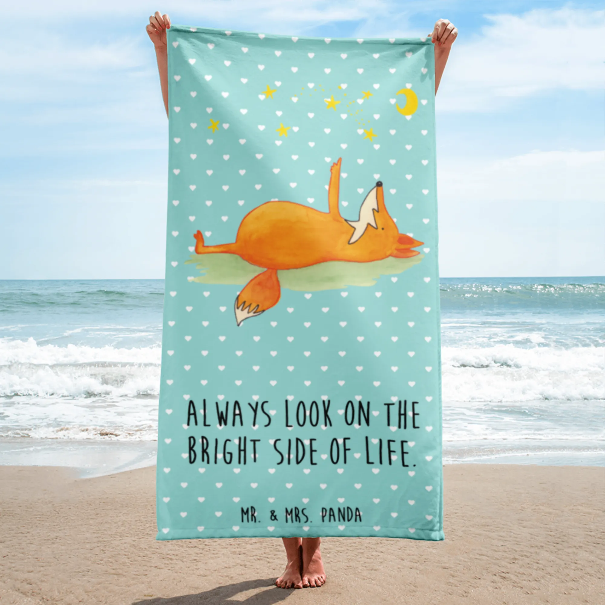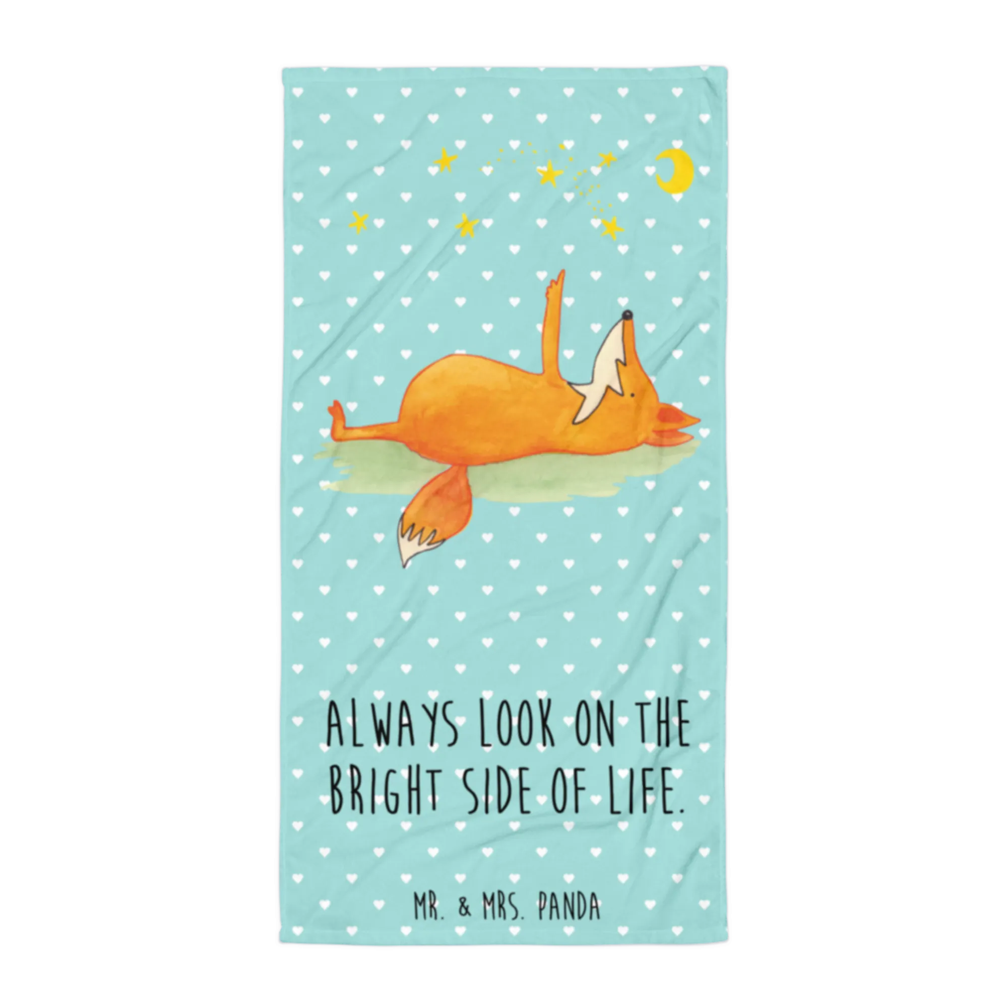 Der kleine Fuchs, der mit seinen wundervollen Sternen am Himmel spielt, lädt dich dazu ein, an die schönen Dinge im Leben zu denken – ganz nach dem Motto: "Always look on the bright side of life!" Ob am Strand, im Schwimmbad oder in der Sauna, dieses Handtuch ist der perfekte Begleiter für all deine Abenteuer.