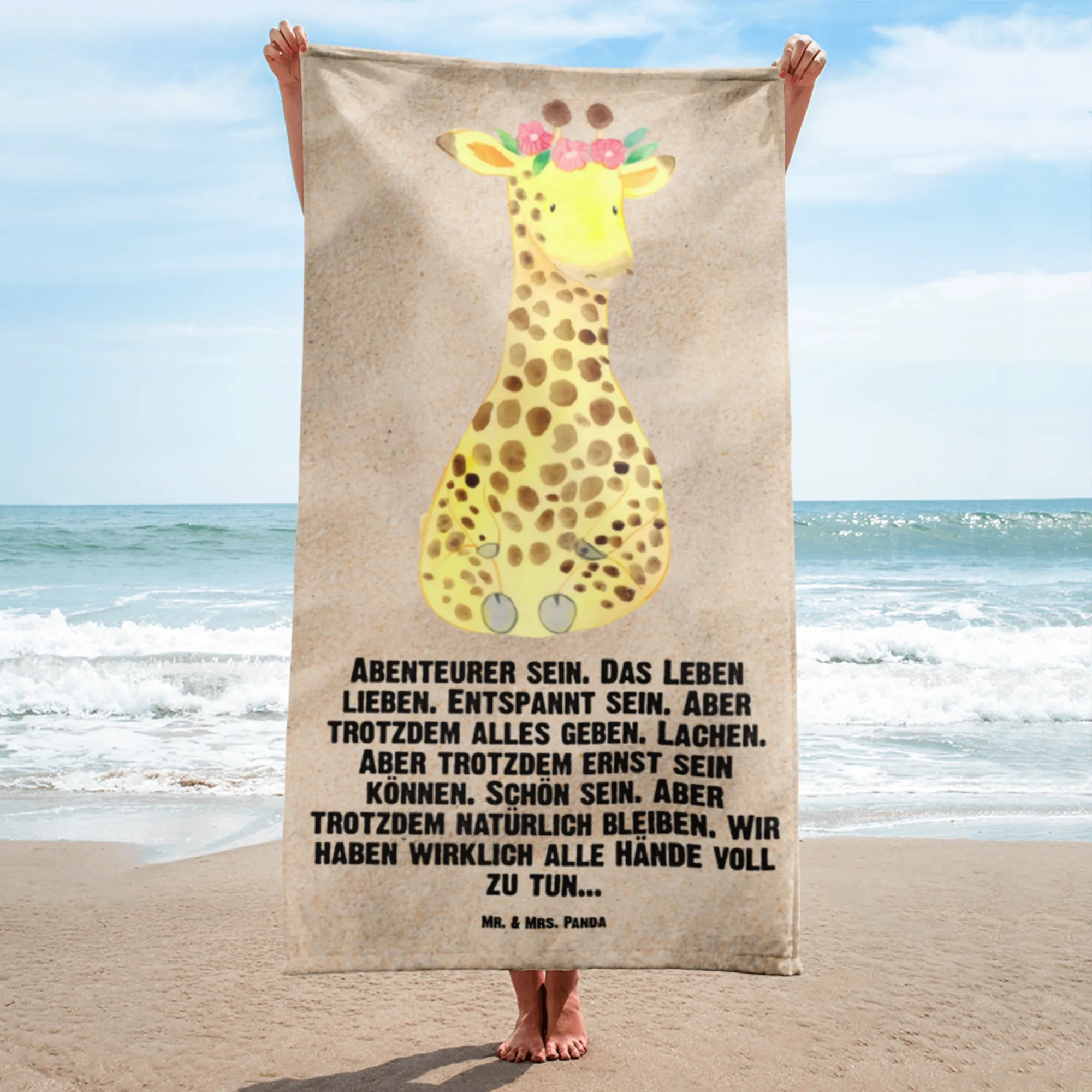 XL Badehandtuch Giraffe Blumenkranz - mit Spruch - Sandig