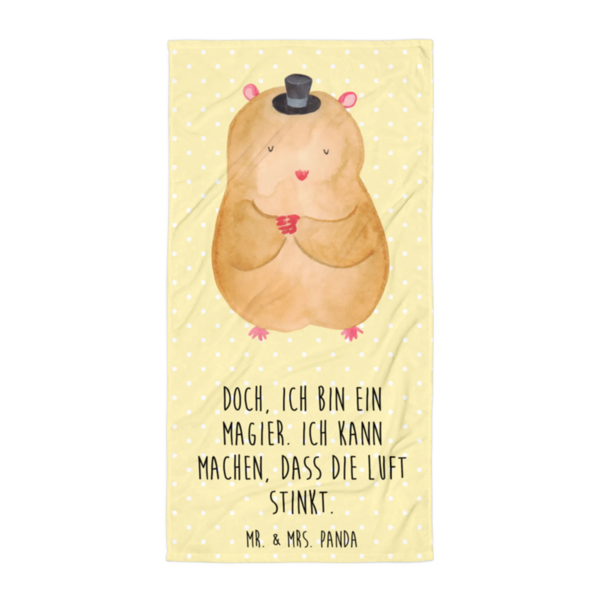 Das XL Badehandtuch mit dem süßen Motiv 'Hamster mit Hut' aus der Small World Kollektion von Mr. & Mrs. Panda ist das perfekte Geschenk für alle Tierliebhaber und Freunde von fröhlichen, lustigen Designs!