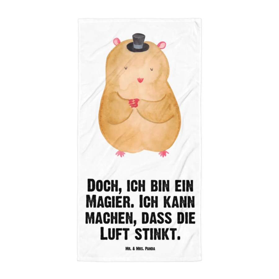 Der niedliche Hamster, der einen Zylinder-Hut trägt, bringt garantiert gute Laune in dein Badezimmer oder an den Strand. Ob als Geschenk zum Geburtstag, zu Weihnachten oder einfach als kleine Aufmerksamkeiten für dich selbst – dieses Handtuch verzaubert Jung und Alt mit seinem charmanten Design und dem witzigen Spruch: 'Doch, ich bin ein Magier. Ich kann machen, dass die Luft stinkt.'