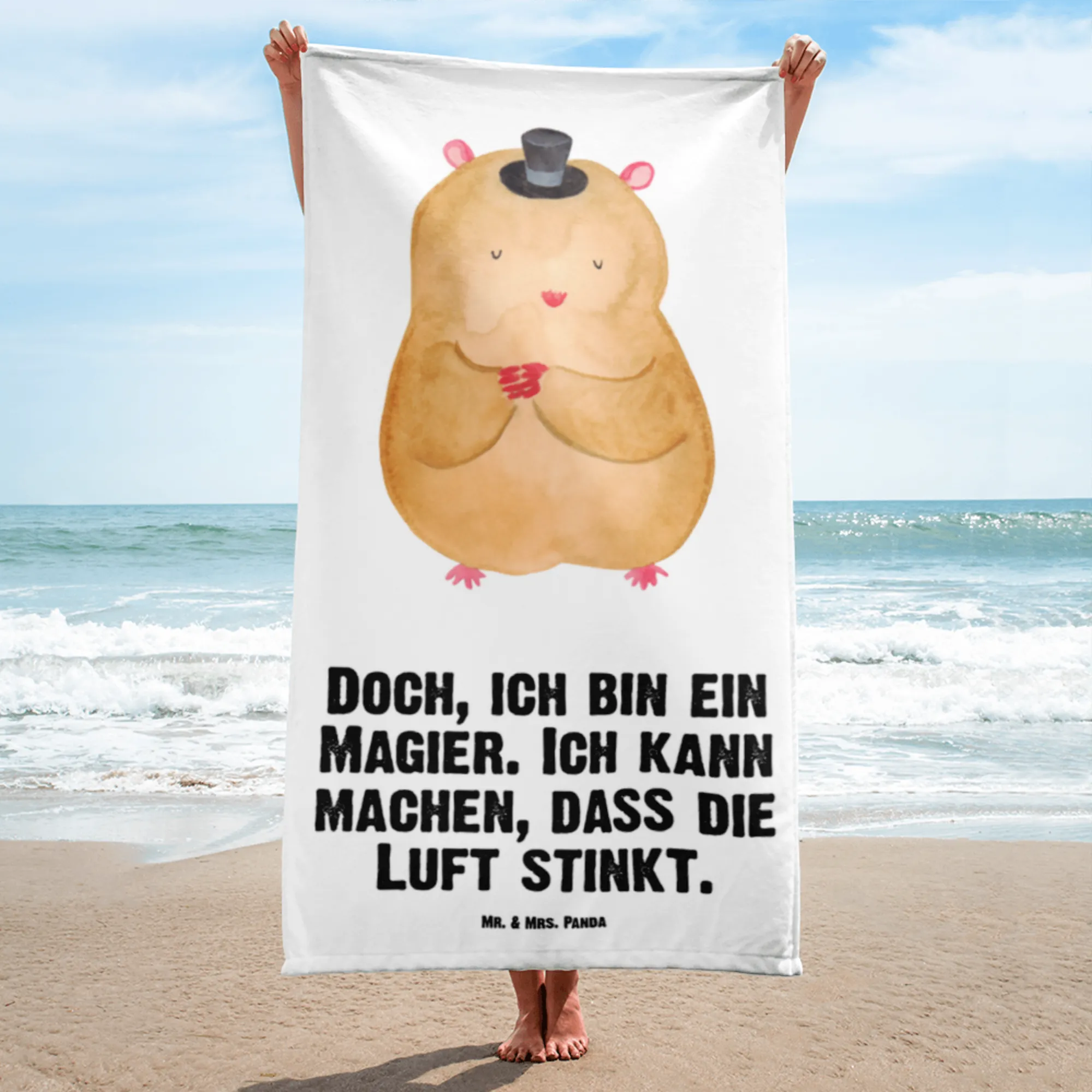 XL Badehandtuch Hamster Hut - mit Spruch - Weiß