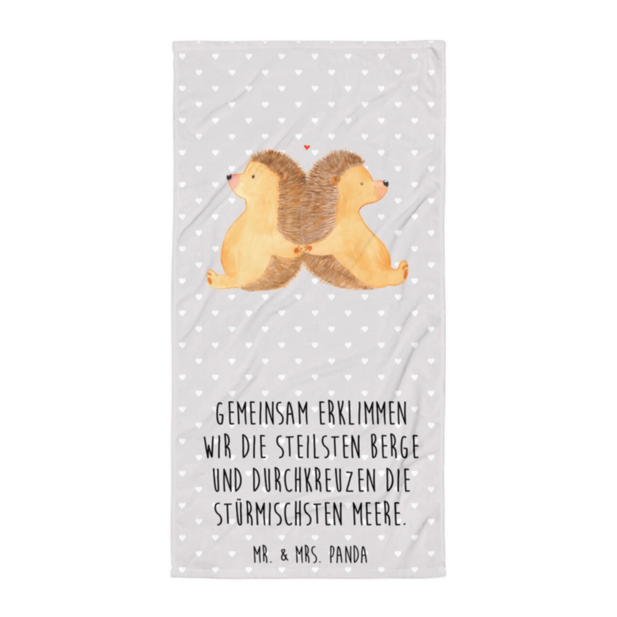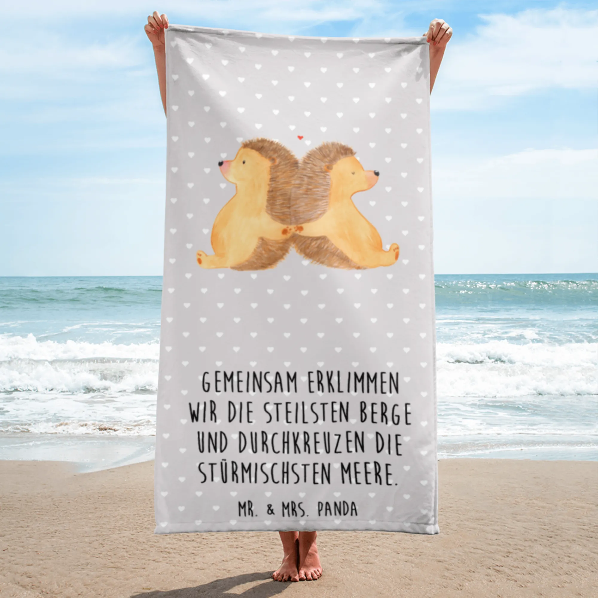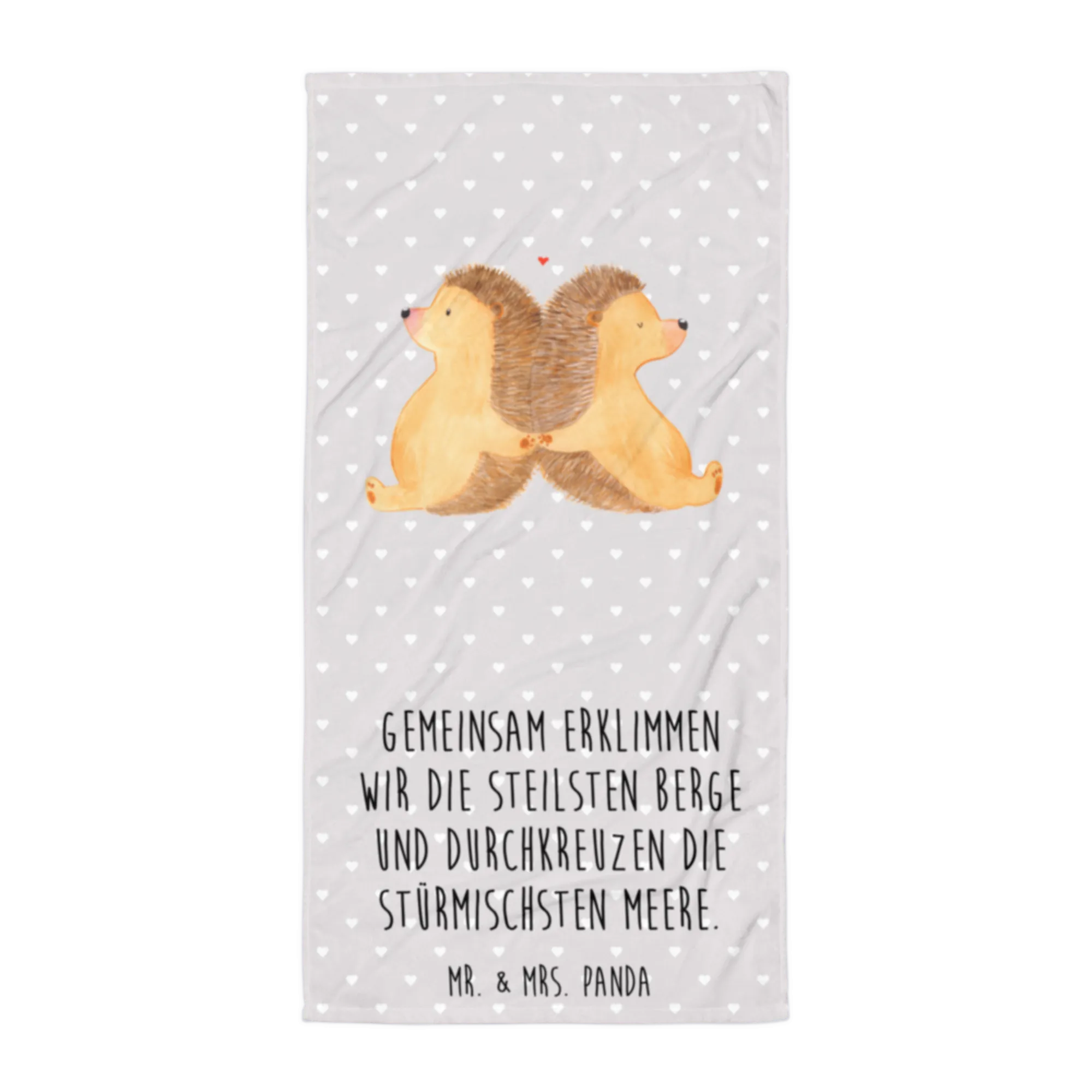 XL Badehandtuch Igel händchenhaltend - mit Spruch - Grau Pastell
