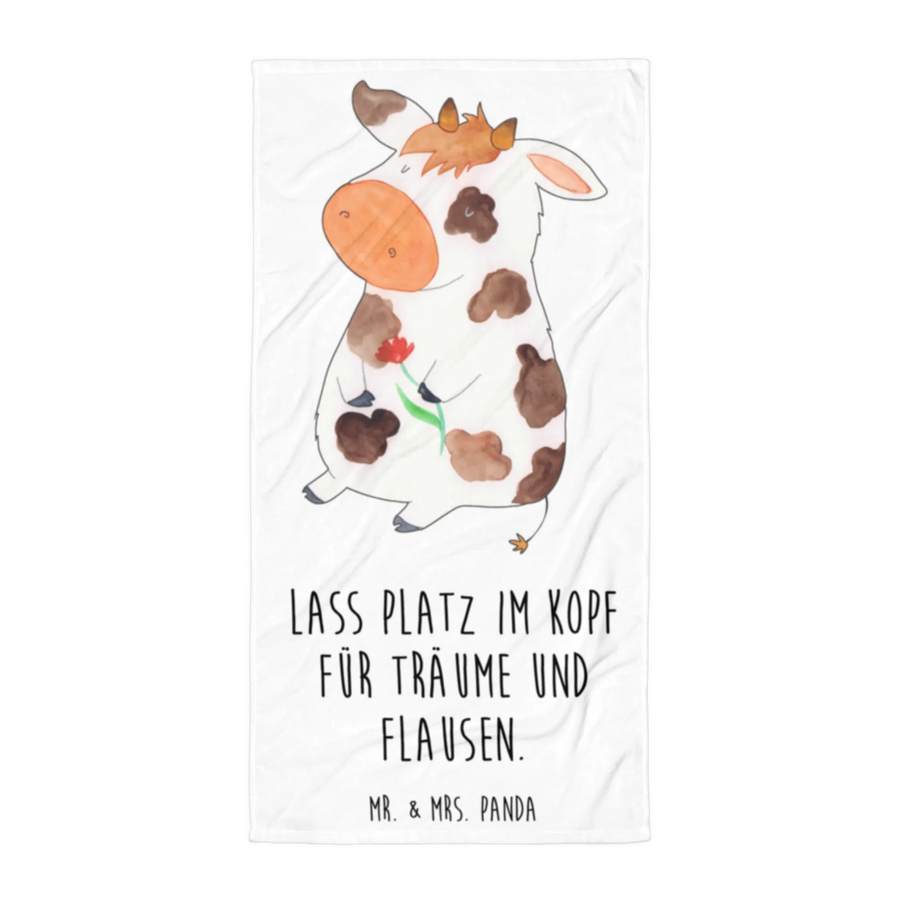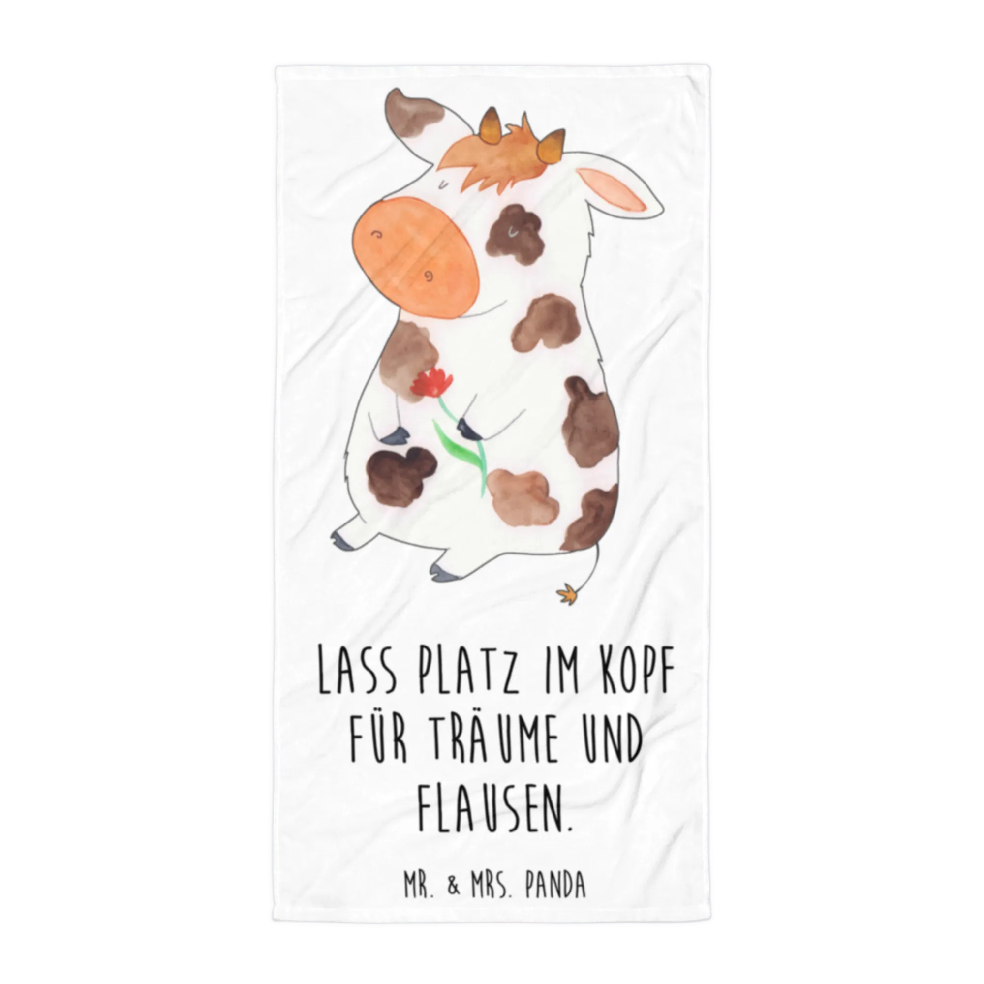 Die Farbbrillanz des Handtuchs und das bezaubernde Motiv werden alle Tierfreunde, insbesondere Kuh-Liebhaber, verzaubern. Der Spruch "Lass Platz im Kopf für Träume und Flausen" gibt dem Badehandtuch zudem einen besonderen Touch, der jeden erlaubt, einmal abzutauchen und seinen Gedanken freien Lauf zu lassen. Und das Beste? Das Handtuch ist ultra saugfähig und pflegeleicht, du kannst es einfach bei 30°C in der Waschmaschine waschen.