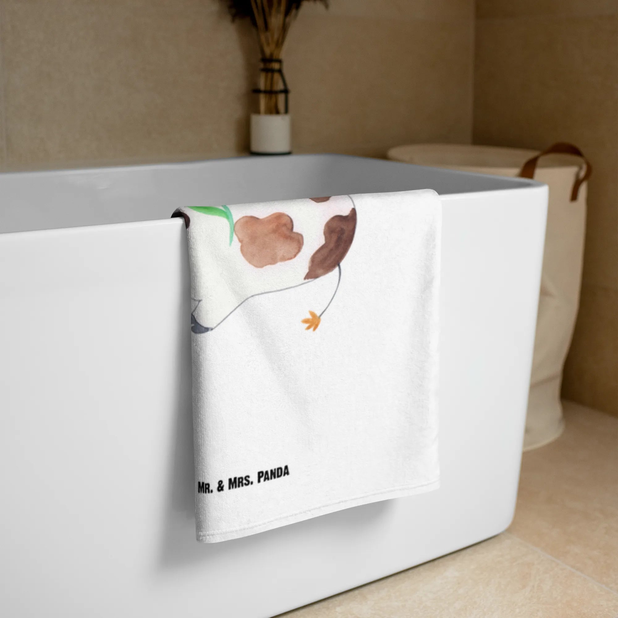 Das XL Badehandtuch von Mr. & Mrs. Panda mit dem süßen Kuh-Motiv aus der Bauernhof-Kollektion ist das perfekte Geschenk für alle, die die ländliche Idylle lieben. Mit den Maßen von 1520 mm x 760 mm und aus einem extra weichen und kuscheligen Baumwollfrottee gefertigt, wird dieses Handtuch nicht nur zum unverzichtbaren Begleiter am Strand, im Schwimmbad oder in der Sauna, sondern zaubert auch ein Lächeln auf jedes Gesicht. Die niedliche Kuh, die stolz eine Blume in der Hand hält, bringt nicht nur Gemütlichkeit in dein Bad, sondern sorgt auch für eine Portion Lebensfreude. Ob als Geburtstagsgeschenk für die Freundin, als Mitbringsel zu einer Einweihungsfeier oder einfach für dich selbst – dieses Handtuch ist ein wahrer Allrounder!