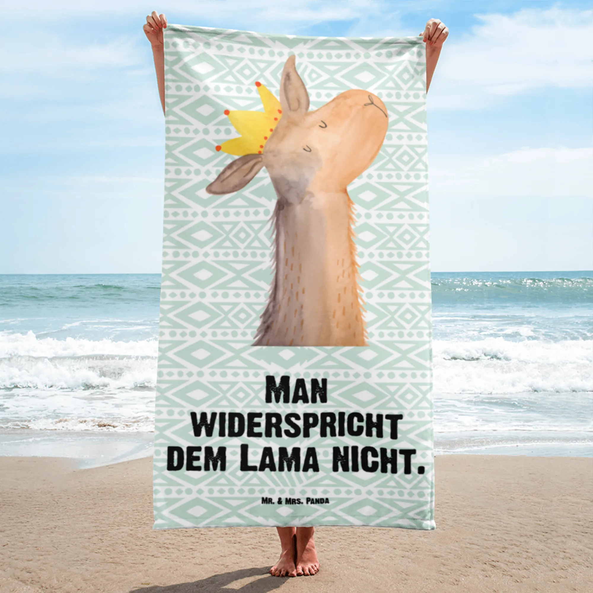 XL Badehandtuch Lamakopf König - mit Spruch - Aztekenblau