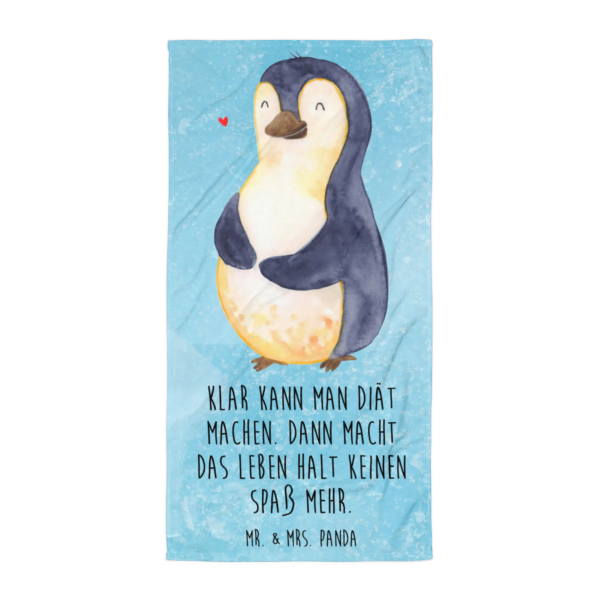 Das XL Badehandtuch mit dem süßen Pinguin-Motiv und dem schönen Spruch "Klar kann man Diät machen. Dann macht das Leben halt keinen Spaß mehr." von Mr. & Mrs. Panda ist das ideale Geschenk für alle, die ein wenig Humor in ihr Leben bringen möchten. Ob du selbst auf Diät bist, dein Gewicht reduzieren möchtest oder einfach mehr Selbstliebe und Körperliebe in deinen Alltag integrieren willst, dieses Handtuch ist der perfekte Begleiter.