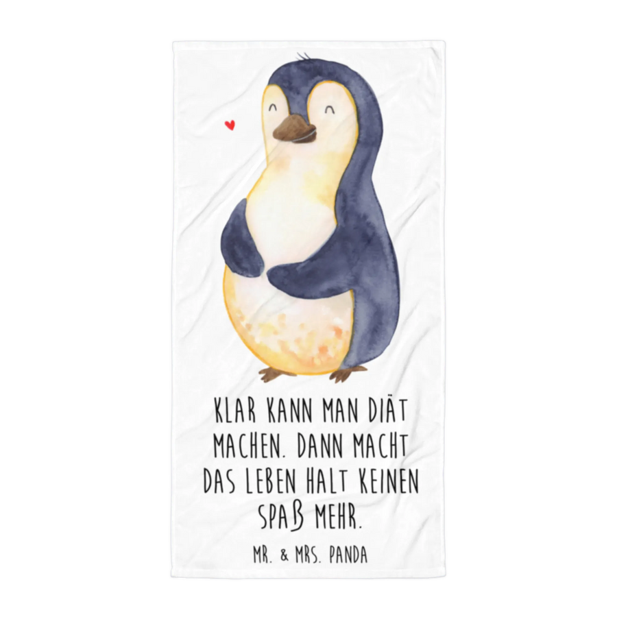 Entdecke das perfekte XL Badehandtuch von Mr. & Mrs. Panda mit dem süßen Pinguin Motiv "Diät"! Ob im Schwimmbad, am Strand oder in der Sauna – dieses extra große und flauschige Handtuch ist der ideale Begleiter für alle, die sich eine Portion Motivation und gute Laune wünschen.