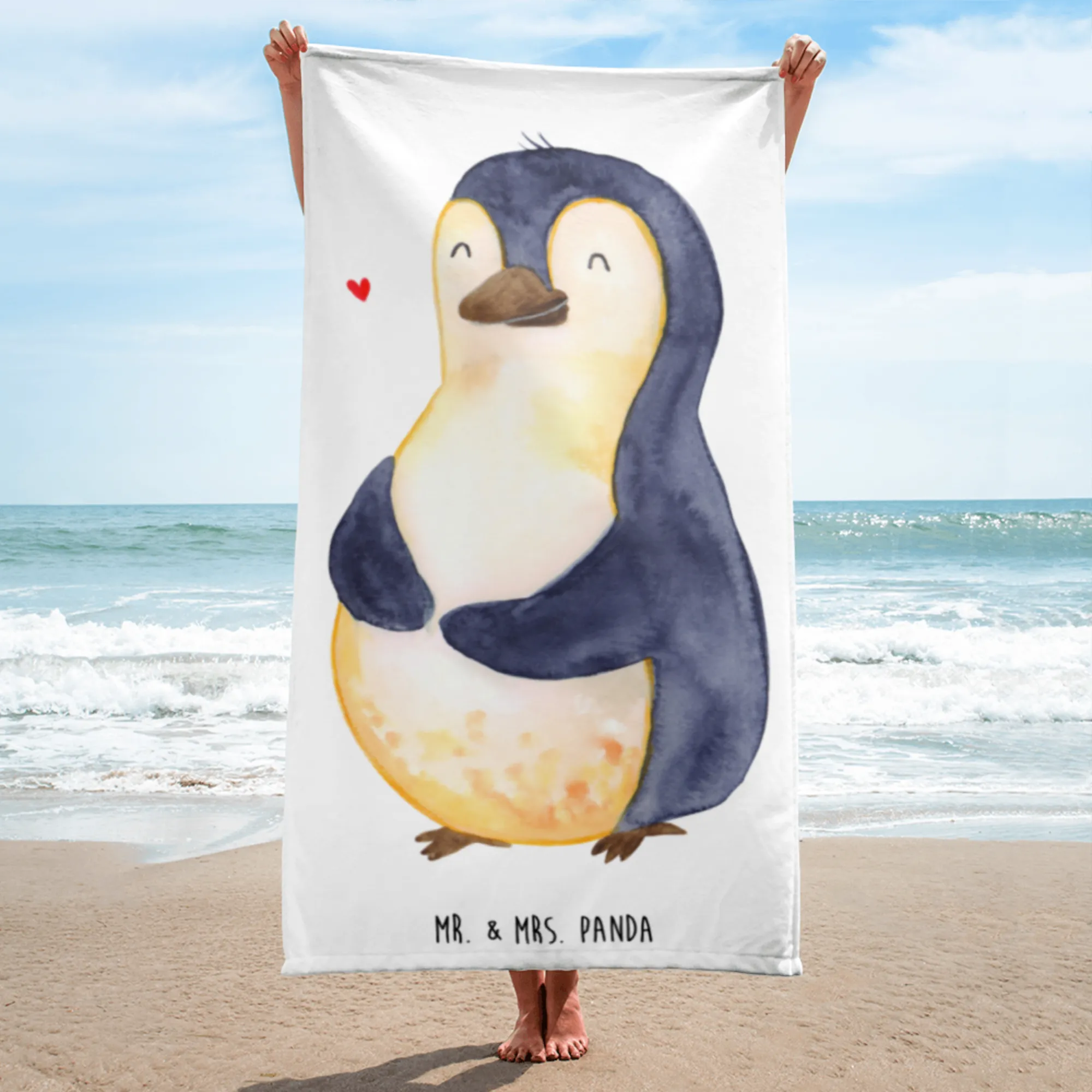 Das XL Badehandtuch mit dem süßen Pinguin-Motiv der Pinguin-Kollektion von Mr. & Mrs. Panda ist das perfekte Geschenk für all jene, die auf der Suche nach einem humorvollen und gleichzeitig praktischen Accessoire sind. Mit seinen großzügigen Maßen von 1520 mm x 760 mm und einer Dicke von 7 mm ist dieses Handtuch nicht nur ein echter Hingucker, sondern auch extrem funktional.