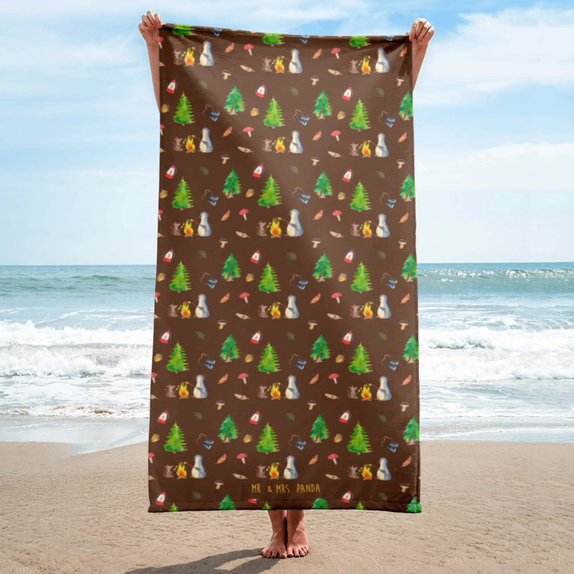 XL Badehandtuch Pinguin Lagerfeuer Muster