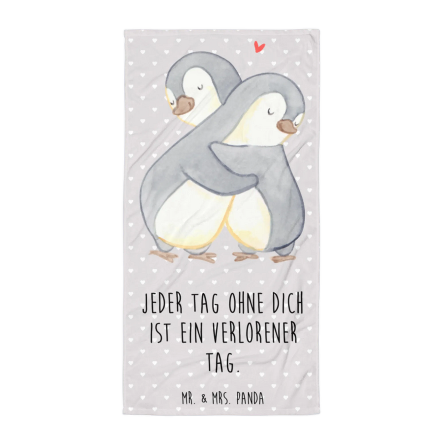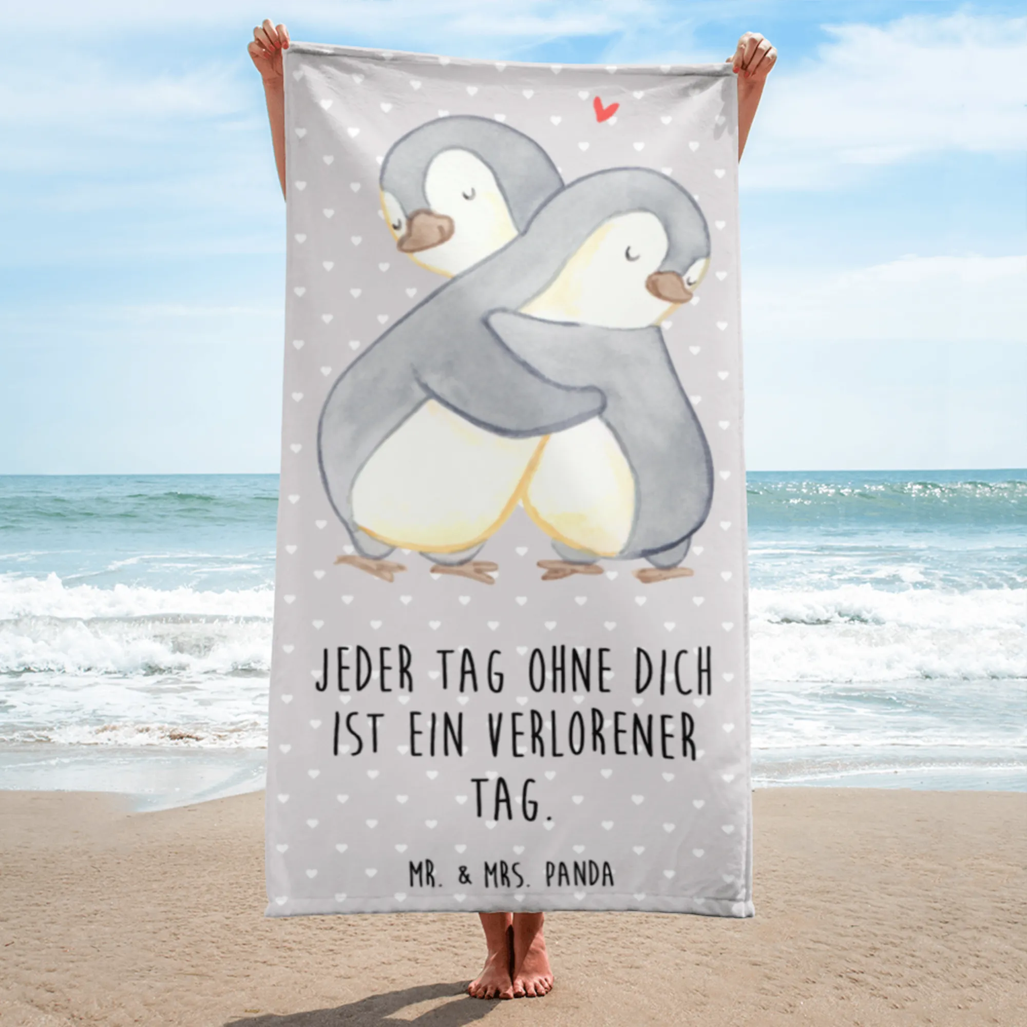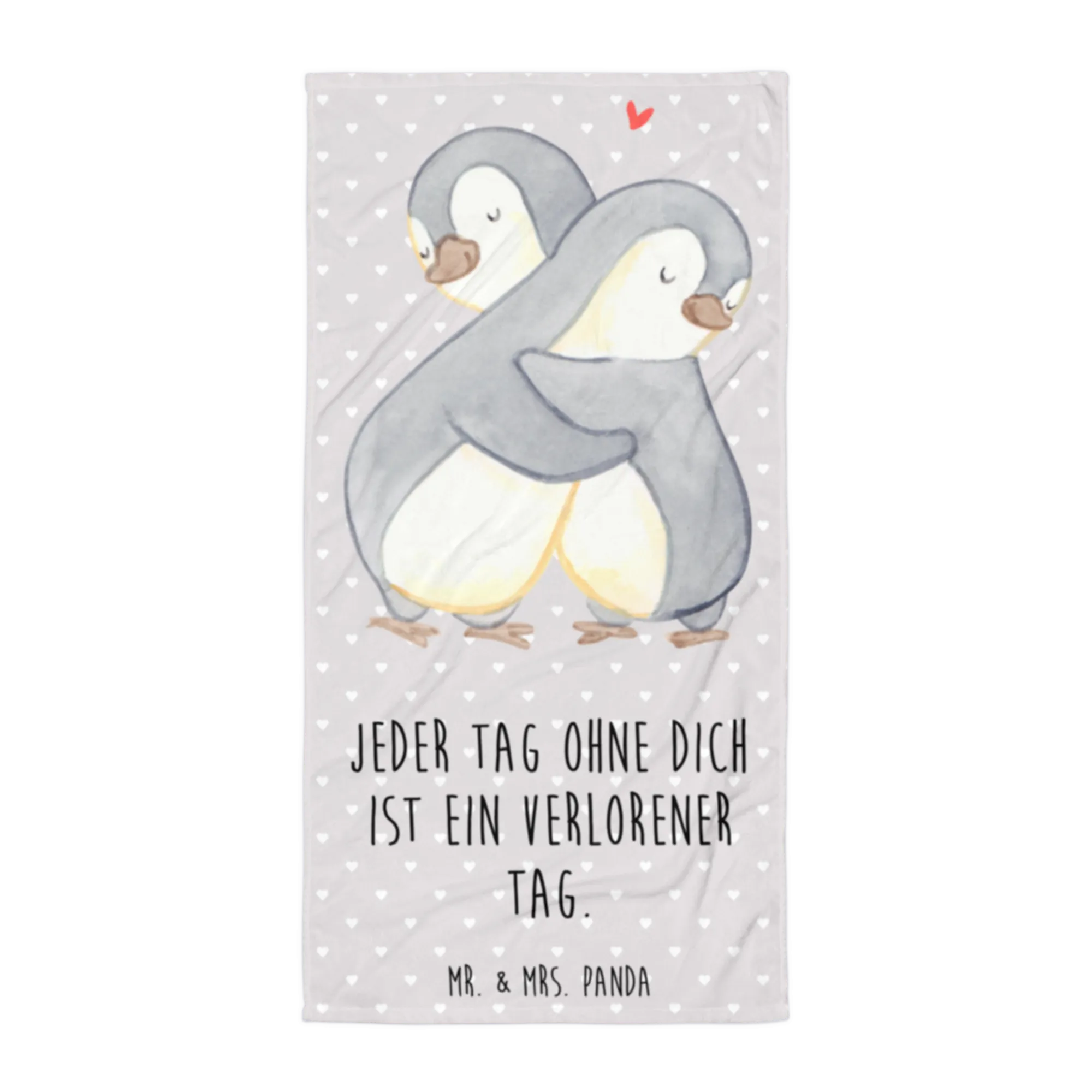 Das XL Badehandtuch "Pinguine Kuscheln" von Mr. & Mrs. Panda ist der ideale Begleiter für unvergessliche Momente am Strand, im Schwimmbad oder in der Sauna. Mit seinen großzügigen Maßen von 1520 mm x 760 mm und einer Dicke von 7 mm bietet es nicht nur ein extra großes und kuscheliges Erlebnis, sondern erinnert dich auch mit seinem liebevollen Design an die schönsten Momente mit deinem Partner oder deiner Partnerin.