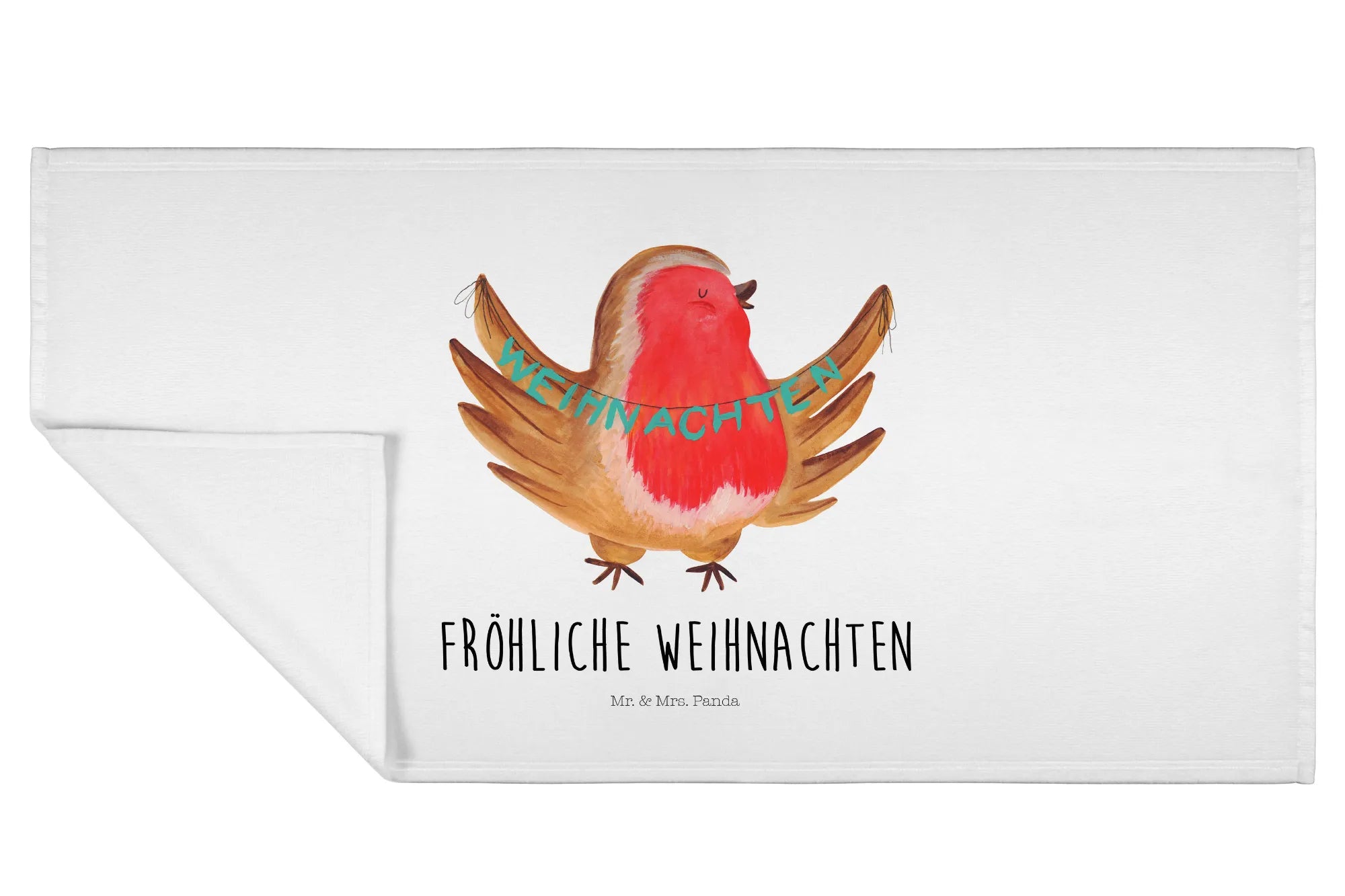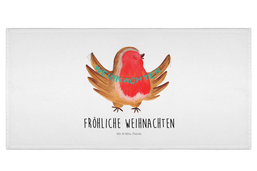 Handtuch Rotkehlchen Weihnachten - mit Spruch - Weiß