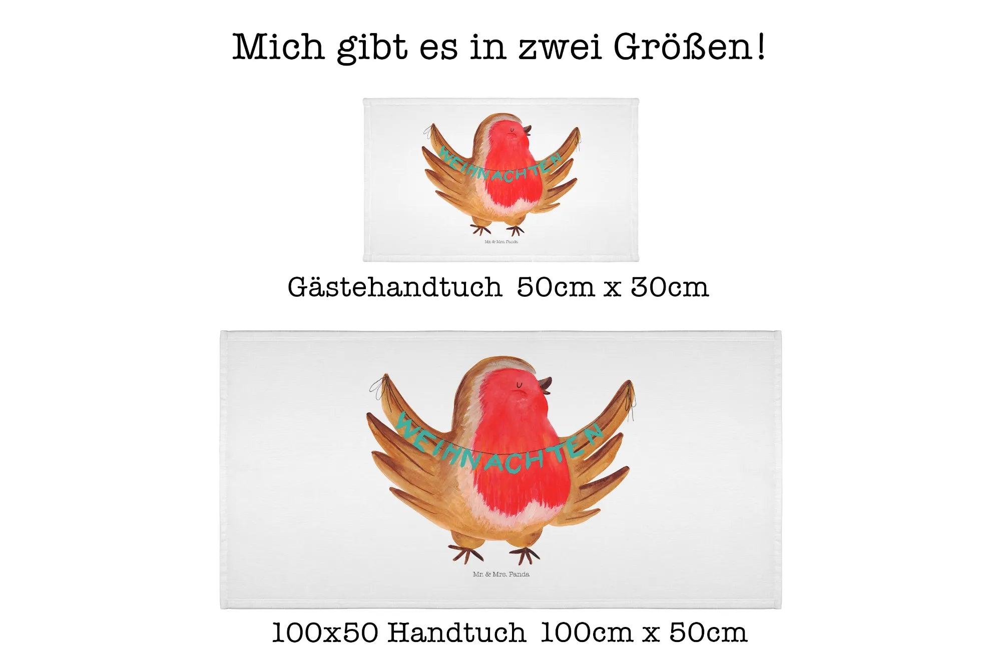 Das XL Badehandtuch "Rotkehlchen Weihnachten" aus der Winter Kollektion von Mr. & Mrs. Panda ist das perfekte Geschenk für die festliche Jahreszeit! Mit einer beeindruckenden Größe von 1520 mm x 760 mm und einem kuscheligen Materialmix aus 50% Baumwolle und 50% Polyester ist es nicht nur ultra saugfähig, sondern auch besonders weich und angenehm auf der Haut.