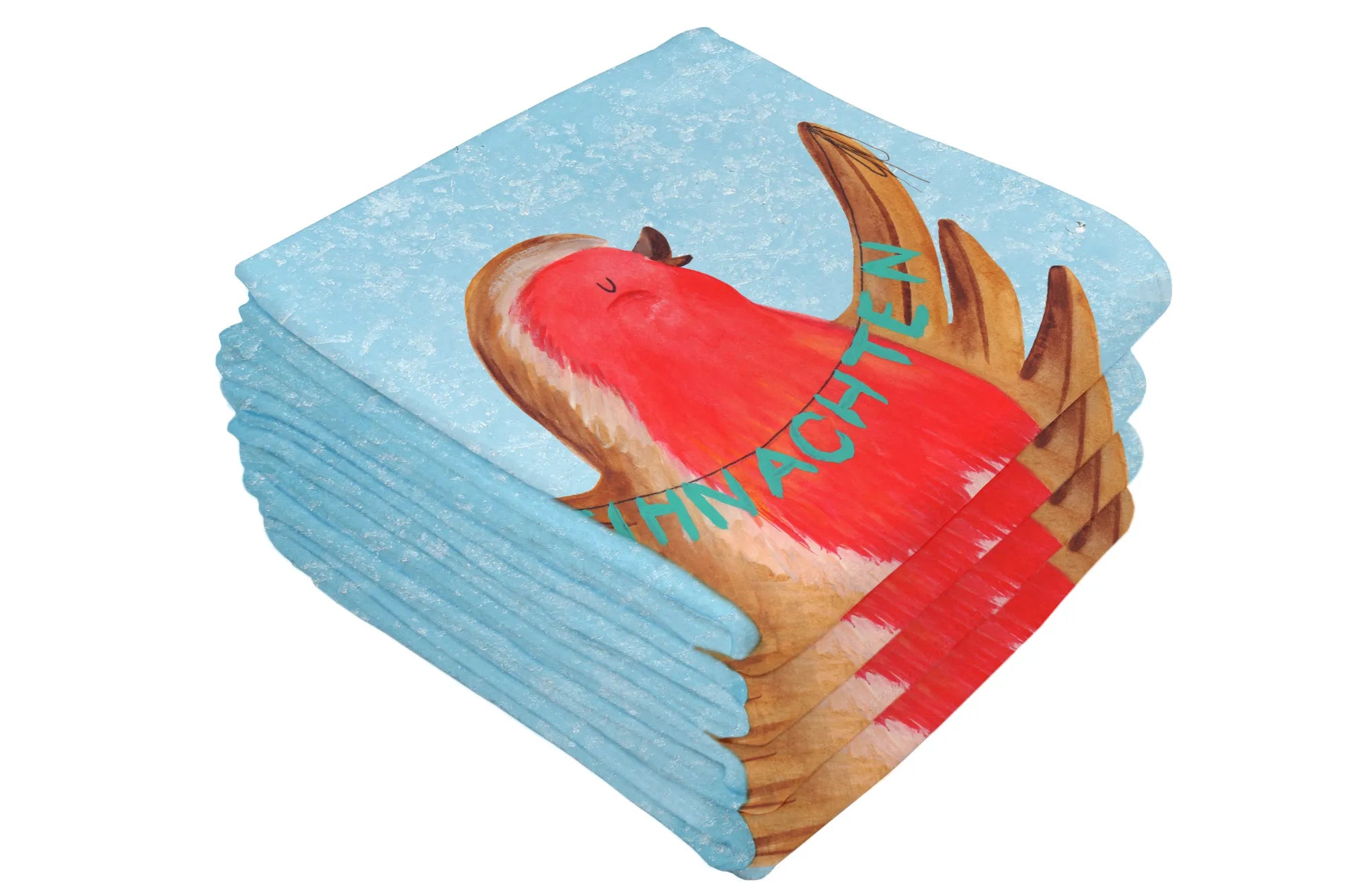 Die Rückseite aus hochwertigem Baumwollfrottee sorgt dafür, dass Du beim Abtrocknen nie wieder frieren musst. Der liebevolle Druck mit dem fröhlichen Rotkehlchen und einem zauberhaften Weihnachtsmotiv bringt die Magie von Weihnachten direkt zu Dir nach Hause! Ob für die Sauna, den Strand oder einfach für entspannte Tage zuhause – dieses Handtuch ist ein wahres Multitalent.