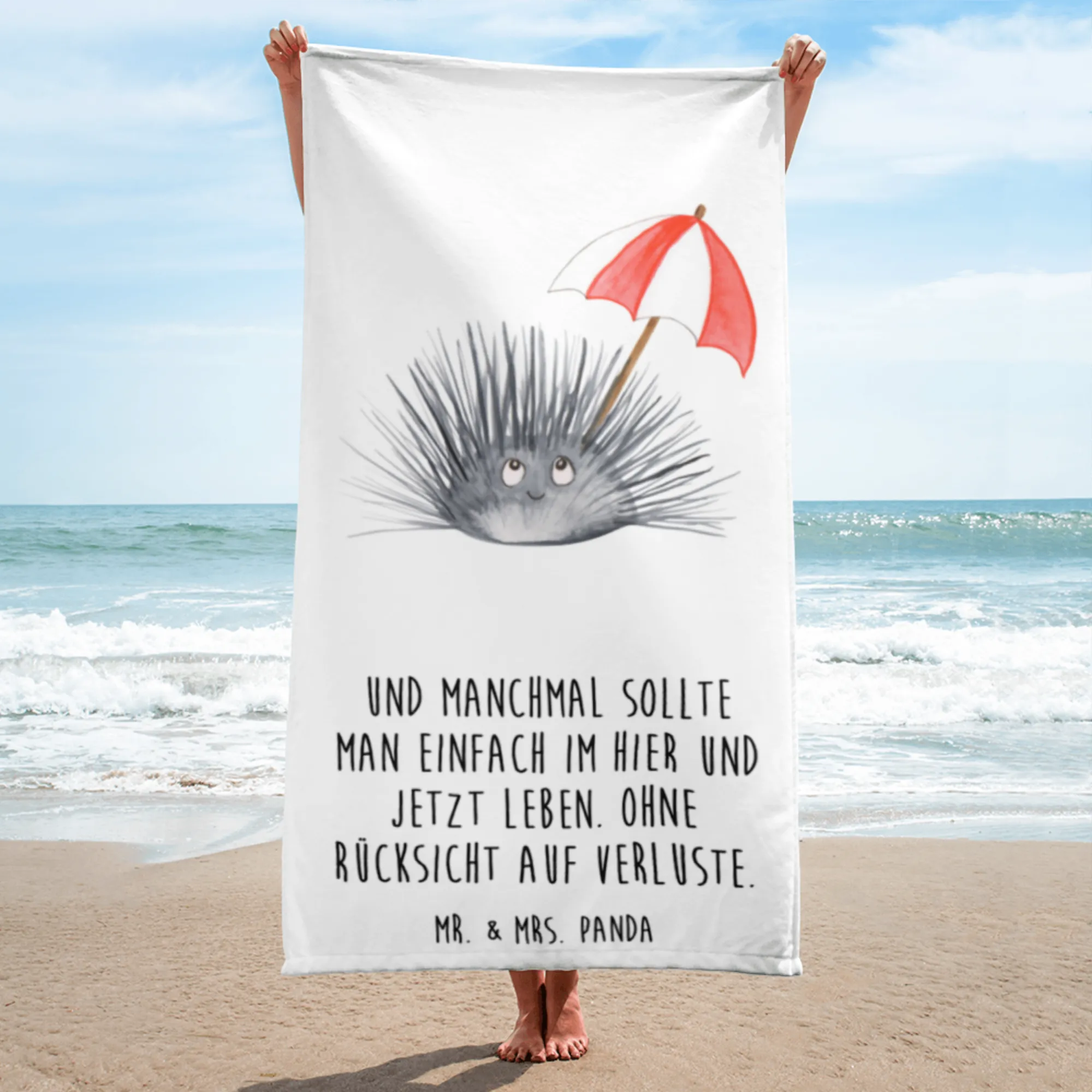XL Badehandtuch Seeigel - mit Spruch - Weiß