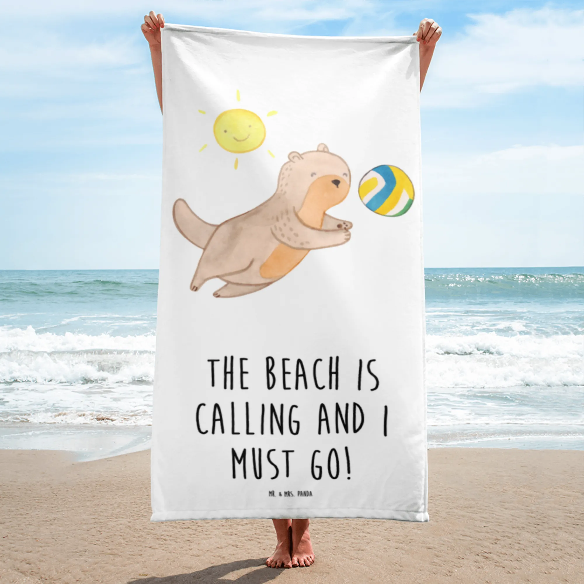 Entdecke unser XL Badehandtuch "Sommer, Meer & Strand" von Mr. & Mrs. Panda – der perfekte Begleiter für Deine sommerlichen Abenteuer! Dieses extra große und flauschige Handtuch ist nicht nur ein praktisches Accessoire, sondern auch ein stilvolles Statement. Mit lebendigen Farben und einem traumhaften Motiv bringt es die leichten Brisen des Strandes direkt zu Dir nach Hause. Es ist aus hochwertigem Baumwollfrottee gefertigt und bietet den ultimativen Komfort. Maße von 1520 mm x 760 mm machen es ideal für jeden Strandbesuch oder einen entspannten Tag am Pool. Du kannst es nach dem Schwimmen um dich wickeln oder entspannt auf die Liege legen. Der Slogan "The beach is calling and I must go!" unterstreicht das Urlaubsgefühl perfekt und macht dieses Handtuch zu einem tollen Geschenk für alle Strandliebhaber.
