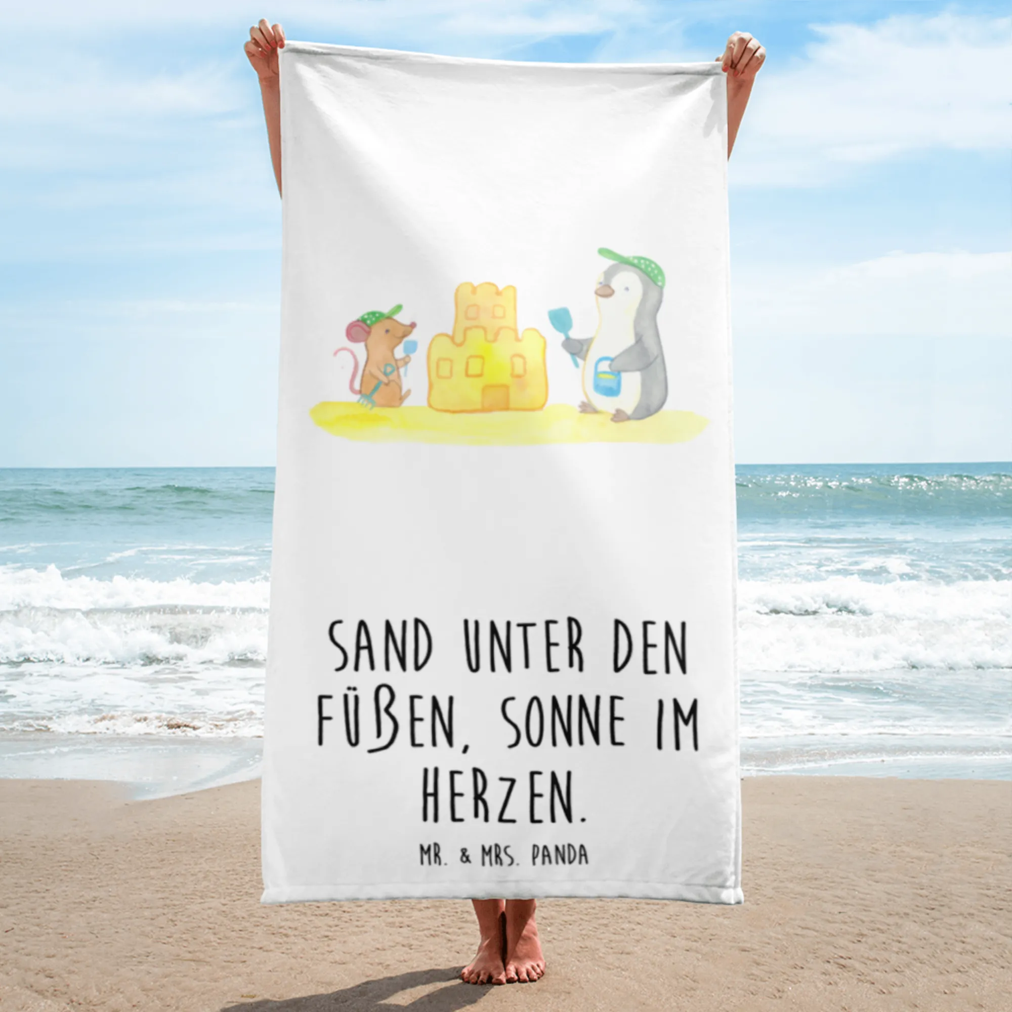 Entdecke das perfekte Begleiter für deinen Sommer: unser XL Badehandtuch "Sommer, Meer & Strand" von Mr. & Mrs. Panda!