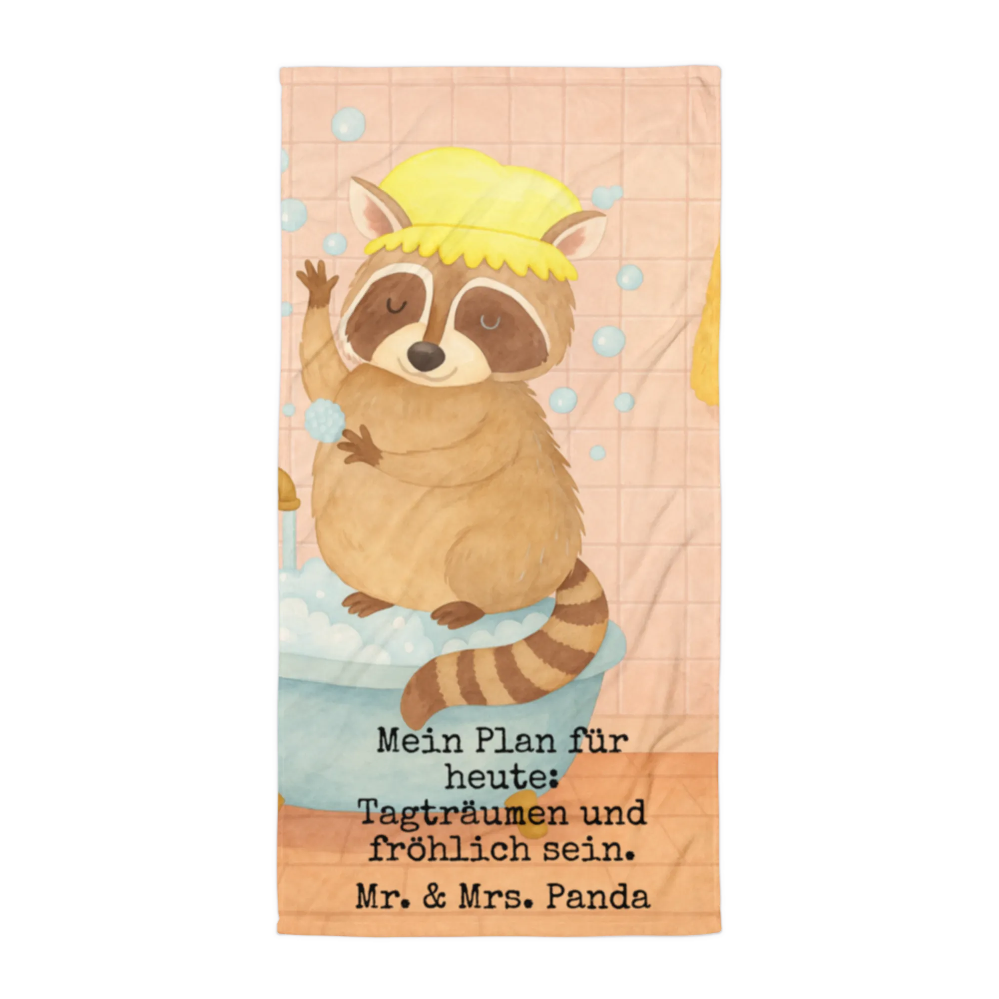 XL Badehandtuch Waschbär Design Handtuch, Badetuch, Duschtuch, Strandtuch, Saunatuch, Tiermotive, Gute Laune, lustige Sprüche, Tiere, Waschbär, Tagträumen, Plan, Fröhlich, waschen, Seifenblasen