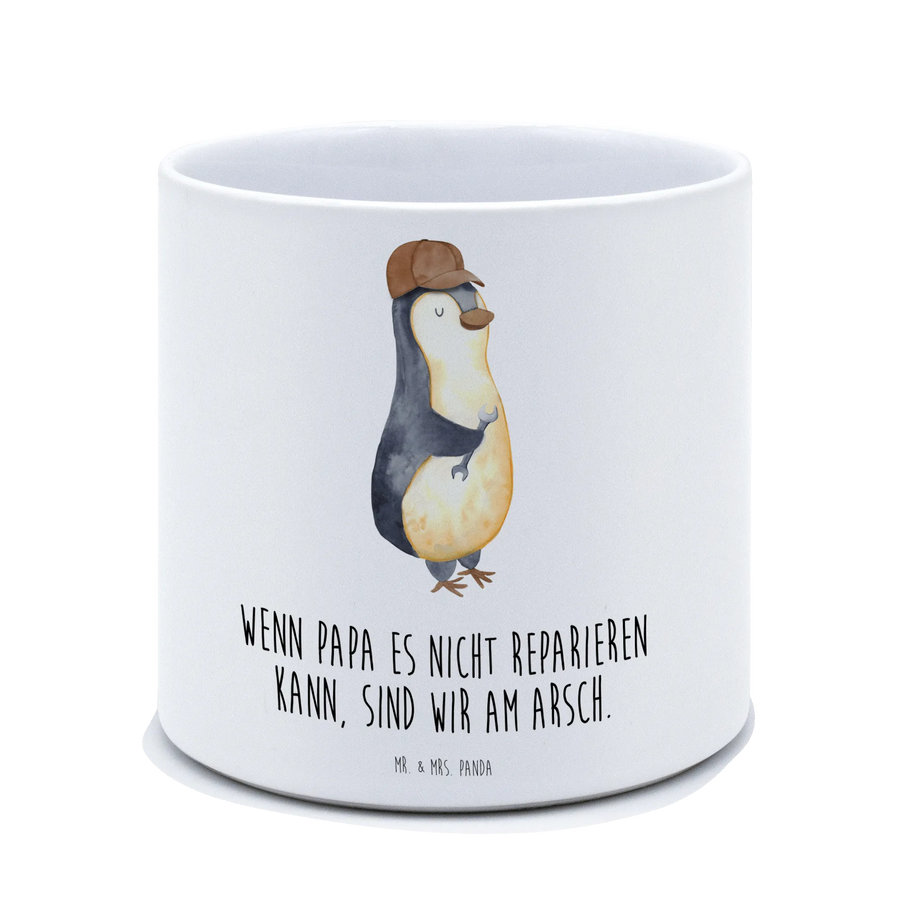 Suchst du das perfekte Geschenk für deinen Papa? Unser XL Blumentopf mit dem Spruch "Wenn Papa es nicht reparieren kann, sind wir am Arsch" ist genau das Richtige! Dieser charmante keramische Topf ist nicht nur ein stylisches Dekorationselement für dein Zuhause, sondern auch eine liebevolle Hommage an alle Väter, die ihre Kinder durch dick und dünn begleiten. Das witzige Motiv zeigt einen Pinguin mit einem Schraubenschlüssel in der Hand, der verkörpert, wie wichtig Väter oft in unserem Leben sind, auch wenn sie vielleicht nicht alles reparieren können. Ob zum Vatertag, an seinem Geburtstag oder einfach nur so, um zu zeigen, wie sehr du ihn schätzt – dieser Blumentopf kommt immer gut an.
