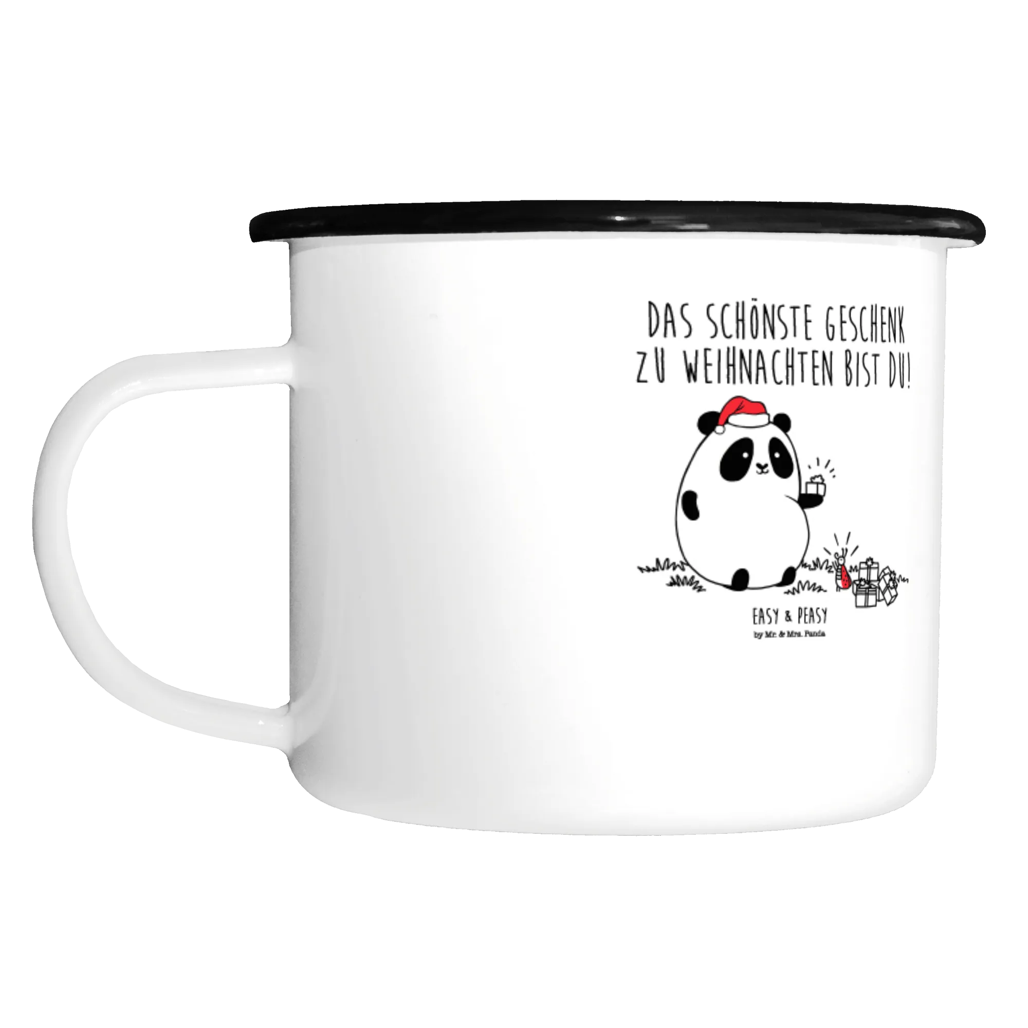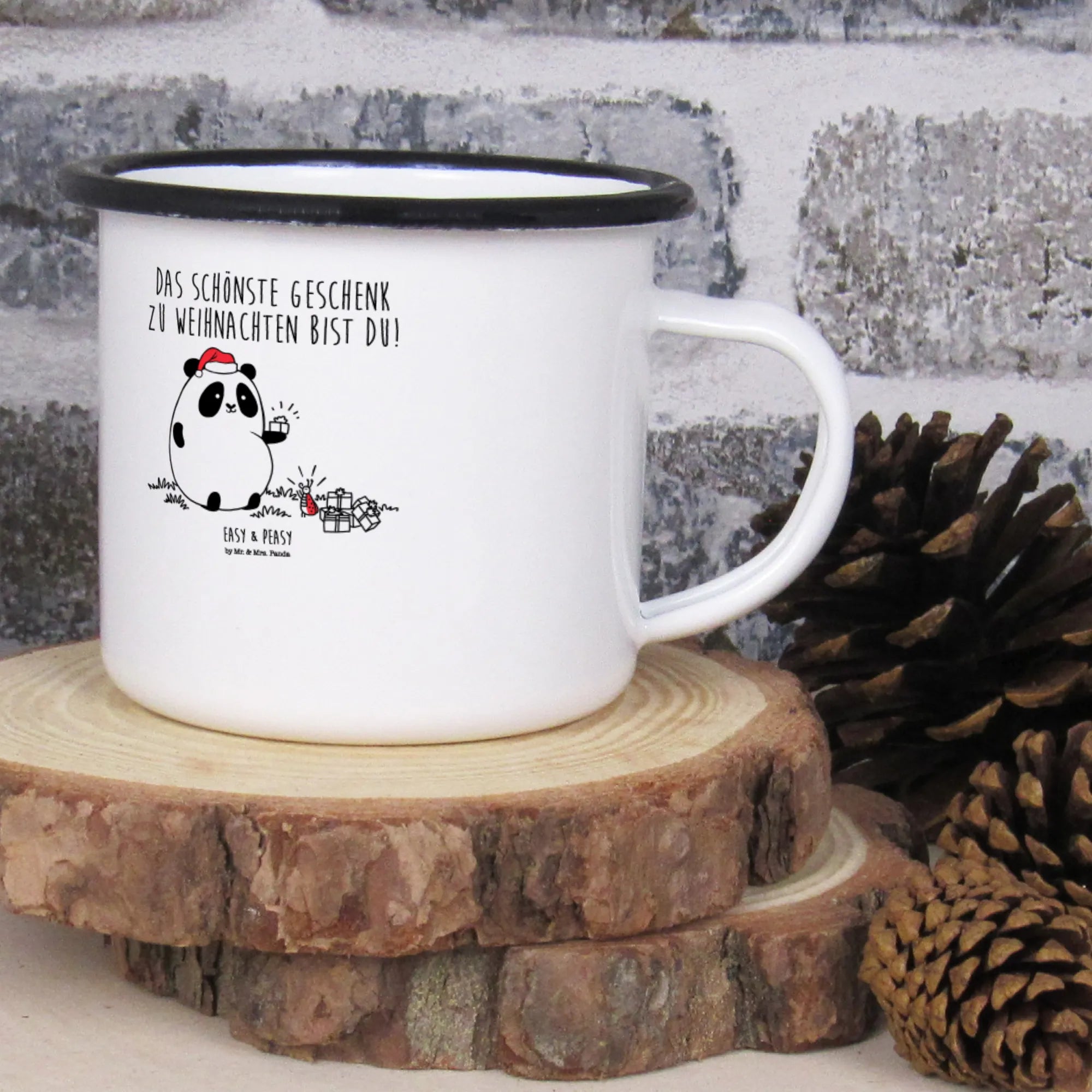 Die XL Emaille Tasse "Easy & Peasy Weihnachtsgeschenk" von Mr. & Mrs. Panda ist das perfekte Geschenk für alle, die Weihnachten lieben und Freude verschenken möchten! Mit ihrem niedlichen Design und dem liebevollen Spruch "Das schönste Geschenk zu Weihnachten bist du!" begeistert diese Metalltasse nicht nur große und kleine Geschenketräumer.