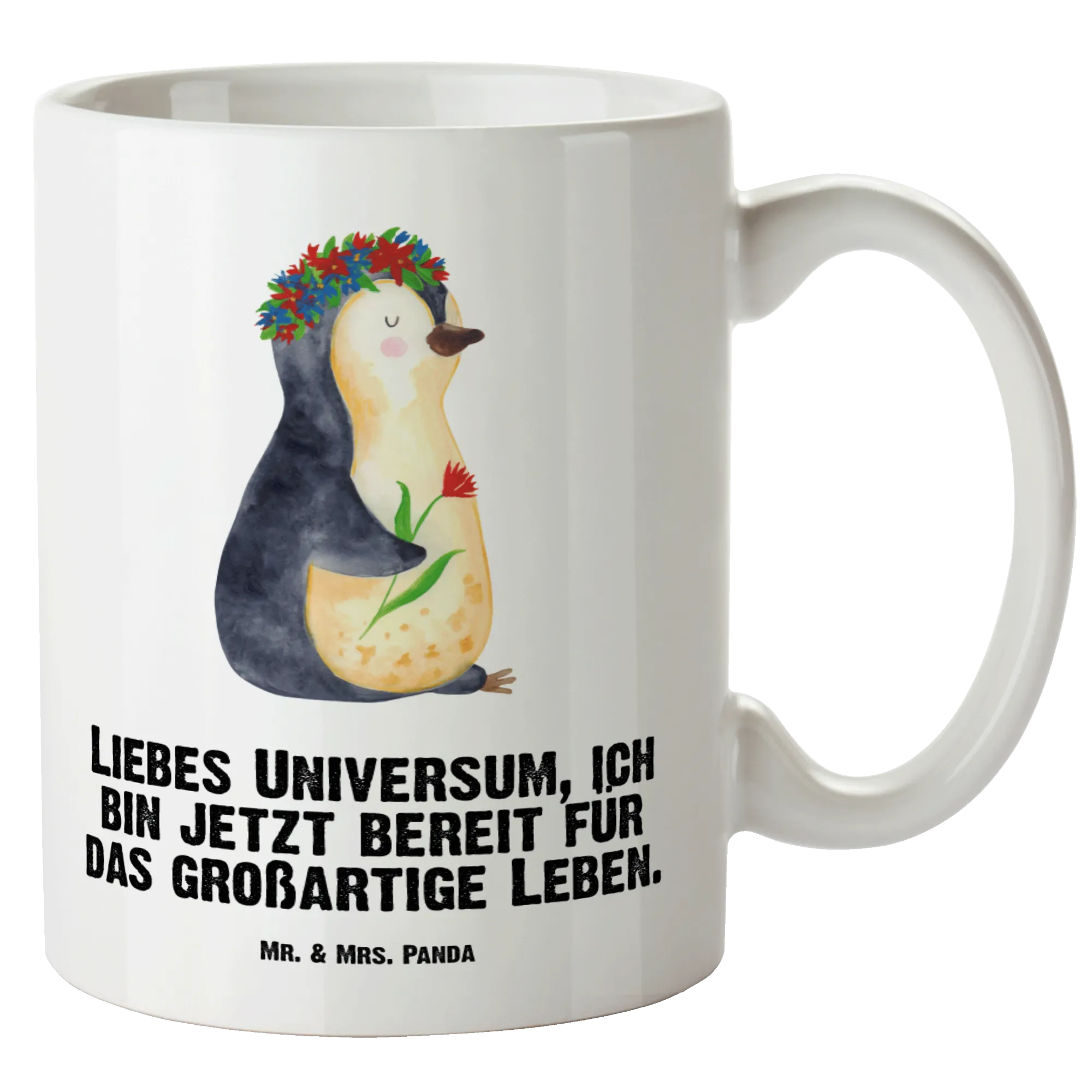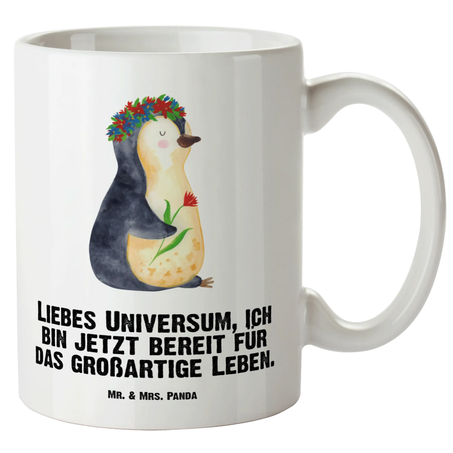 XL Tasse Pinguin Blumenkranz - mit Spruch