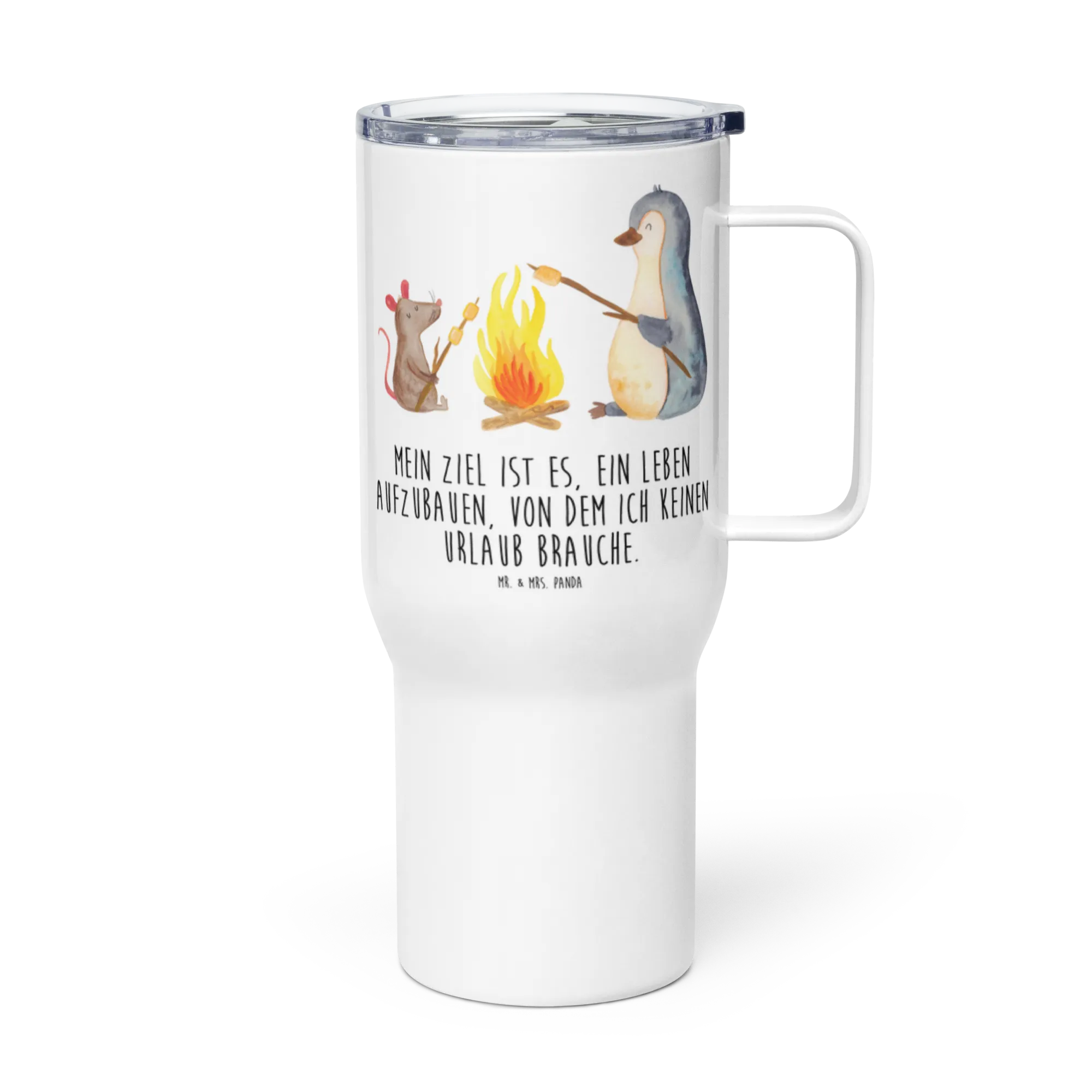 Mit unserem XXL Thermobecher von Mr. & Mrs. Panda bist du für jedes Abenteuer bestens gerüstet! Ob heißer Kaffee oder erfrischender Eistee, dieser vielseitige Thermobecher hat Platz für bis zu 740 ml Getränke. Die doppelte Isolierung sorgt dafür, dass dein heißes Getränk bis zu 6 Stunden warm bleibt und kalte Getränke sogar bis zu 8 Stunden kühl bleiben! Aus hochwertigem Edelstahl und ausgestattet mit einem praktischen auslaufsicheren Deckel, ist dieser Becher der ideale Begleiter für unterwegs. Die imposanten Designs und inspirierenden Sprüche von Mr. & Mrs. Panda machen ihn zudem zu einem tollen Geschenk für jeden Anlass. Perfekte Größe, damit er in die meisten Autotassenhalter passt – bring deinen Stil mit auf die Straße!